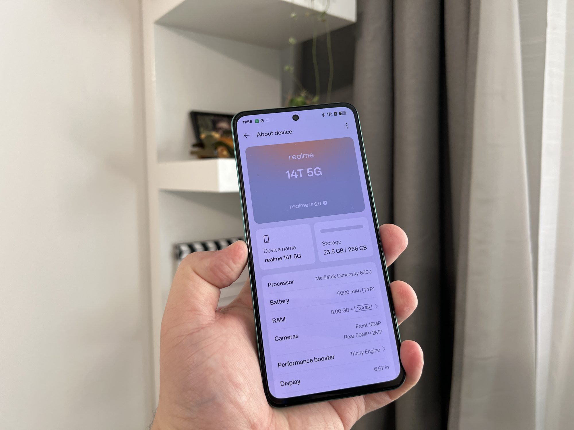 realme 14T pluseaza cu un senzor de amprenta pe lateral, un jack de 3.5mm pentru casti, 5G, Wi-Fi 5 si Bluetooth 5.3. Unii ar spune ca este un minus ca nu are Wi-Fi 6, dar credeti-ma ca nu ii pasa nimanui.