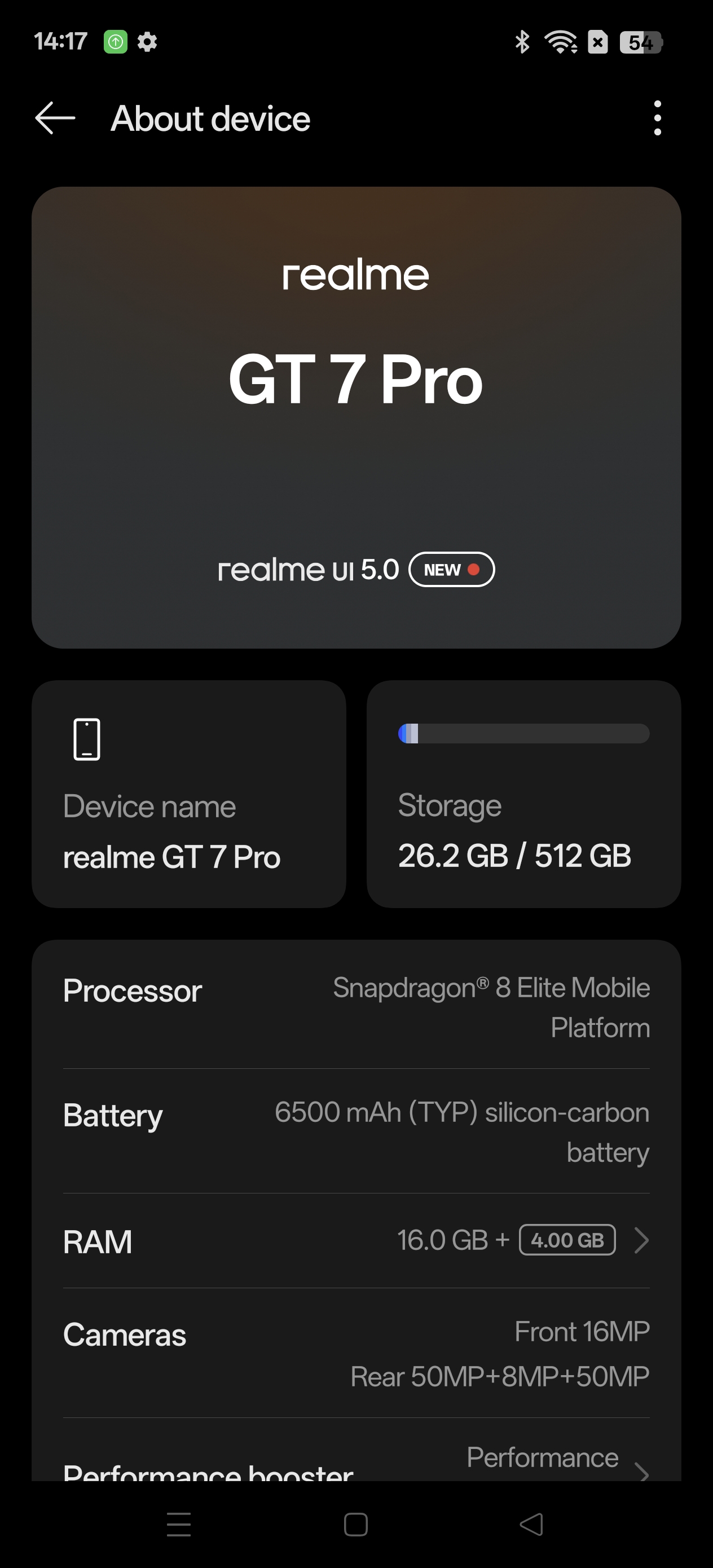Am avut Realme GT pro primul și am fost f încântat de el, era în top AnTuTu in primele 10 poziții, in schimb l-am scăpat din greșeală pe jos și s-a spart display-ul. Foarte scumpe sunt piesele la Realme am platit 1300 lei și era și rama deformată așa a rămas, a trebuit să renunț la el, dar că performanțe era top doar că se încălzea destul de mult când mă jucam pe el. Aveam 256 GB stocare și rami 12 GB și puteam să aleg să-i pun 16 GB, 4 fiind din stocare.