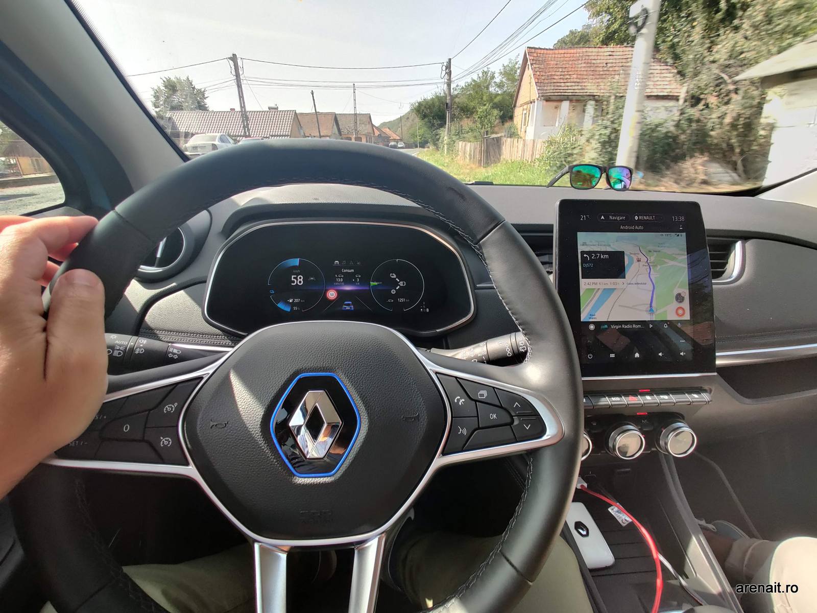 Renault Zoe ZE 50 echipat decent se poate cumpără de undeva de pe la 20.000 Euro cu toate reducerile, sau poate chiar ușor sub, depinde de reducerile de moment. Neapărat luați și încărcare rapidă pe CCS (50 kW), care e opțională și costă 750 euro. Navigația mică e și ea ok, că oricum știe Android Auto și Apple CarPlay, o puteți vedea în review-ul de la Captur. Sistemul Bose nu merită, însă pachetul de iarnă cu vârf și îndesat.