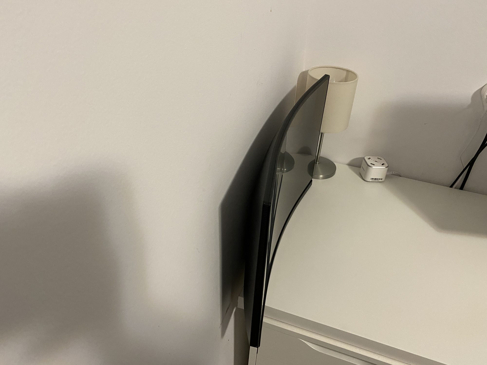 Are butoane de volum sub marginea de jos si porturi suficiente si de bun simt: 2x HDMI si 1x DP. Ca idee poate sa stea pe birou si fara suport. Sta chiar drept fara sa fie sprijinit de perete. Mi se pare tare.