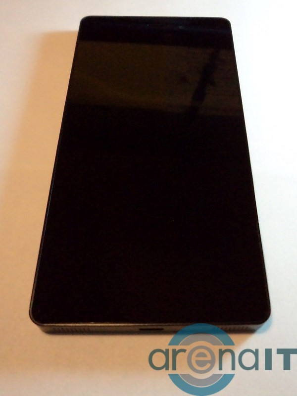 Probabil aspectul telefonului are un rol important in impactul pe care l-a avut asupra majoritatatii criticilor din IT. Pe langa faptul ca se misca fara nicio fluctuatie, telefonul arata si foarte bine: avem de-a face cu un design unibody, dintr-o singura bucata, neavand acces la baterie. S-a folosit o tactica de laminare, ce a facut telefonul destul de patratos si cu margini perpendiculare, dar m-am obisnuit destul de usor. Carcasa e facuta dintr-un policarbonat de culoare neagra (exista si varianta pe alb), la care am apreciat faptul ca nu este lucios si nici nu este un aspirator de amprente. In partea dreapta gasim butoanele de volum, in partea superioara butonul de pornit / oprit si jack-ul audio de 3.5 mm. Continuand, in partea stanga a telefonului vom gasi slotul pentru microSD, iar in partea inferioara a acestuia avem de-a face cu un difuzor (desi exista doua grilaje, doar unul functioneaza, celalalt este strict de design). In mijlocul acestor grilaje intalnim si mufa de incarcare, microUSB. Singurul minus pe care l-am sesizat e faptul ca pe spatele telefonului a fost lipita o tipla cu IMEI-ul telefonului, tipla care a zburat destul de repede. Cred ca era mai bine daca IMEI-ul se imprima direct pe carcasa.