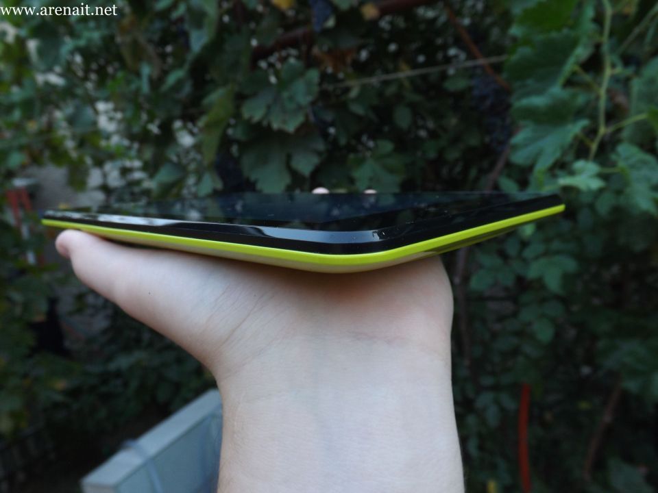Unul din punctele forte ale tabletei este ca poate fi gasita pe mai multe culori. Noi am avut varianta verde, culoare ce o facea sa para foarte fresh si parca imi venea sa musc din ea, la propriu. Mi-a placut plasticul de calitate si finisajele foarte bune, astfel ca nu o sa aveti surpriza ca tableta sa scartaie sau sa aibe locuri in care nu este bine fixata. Sta foarte bine in mana utilizatorului si este foarte comoda chiar si tinuta intr-o mana.