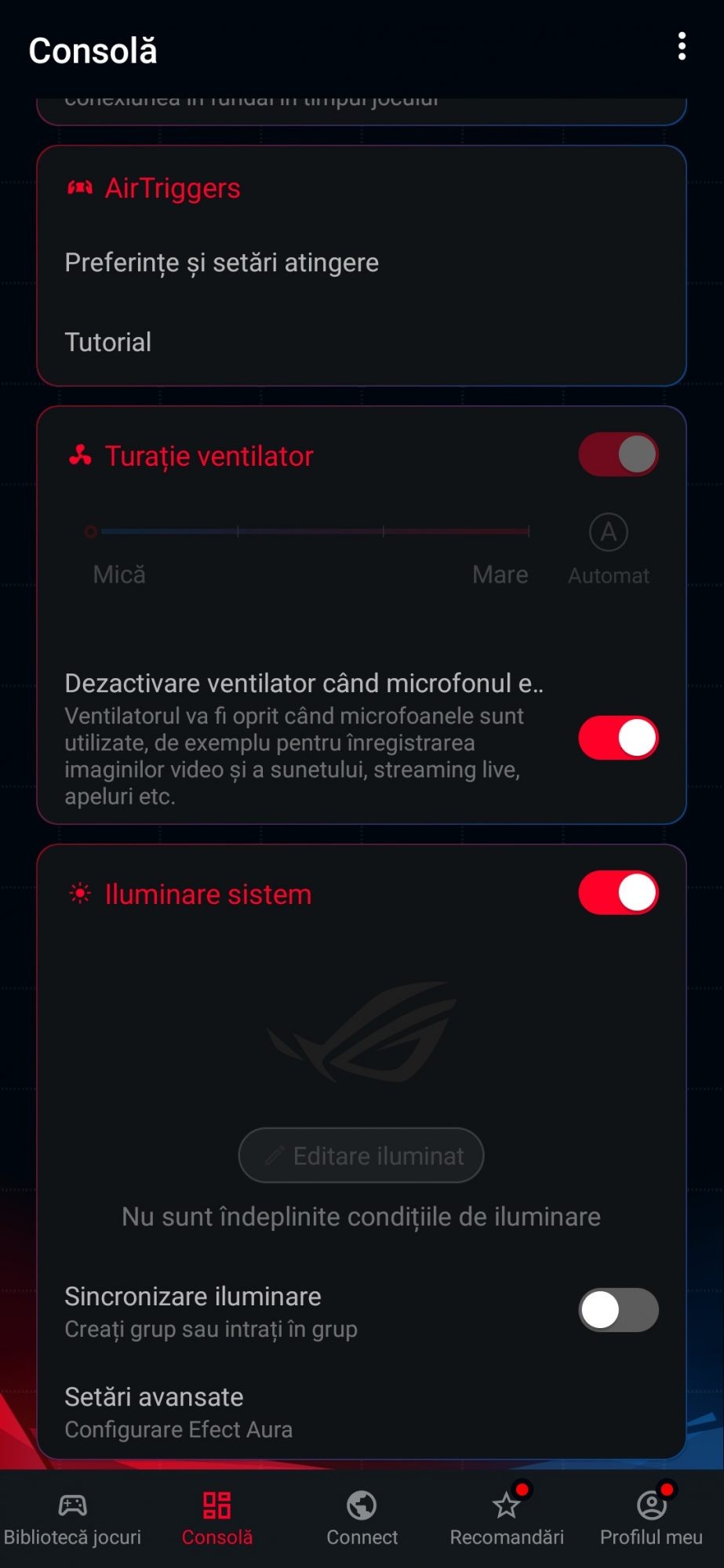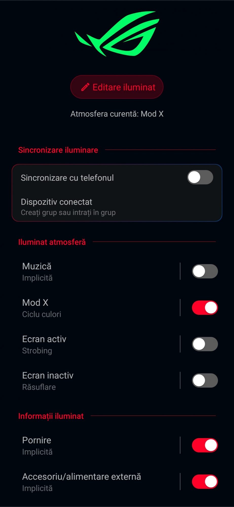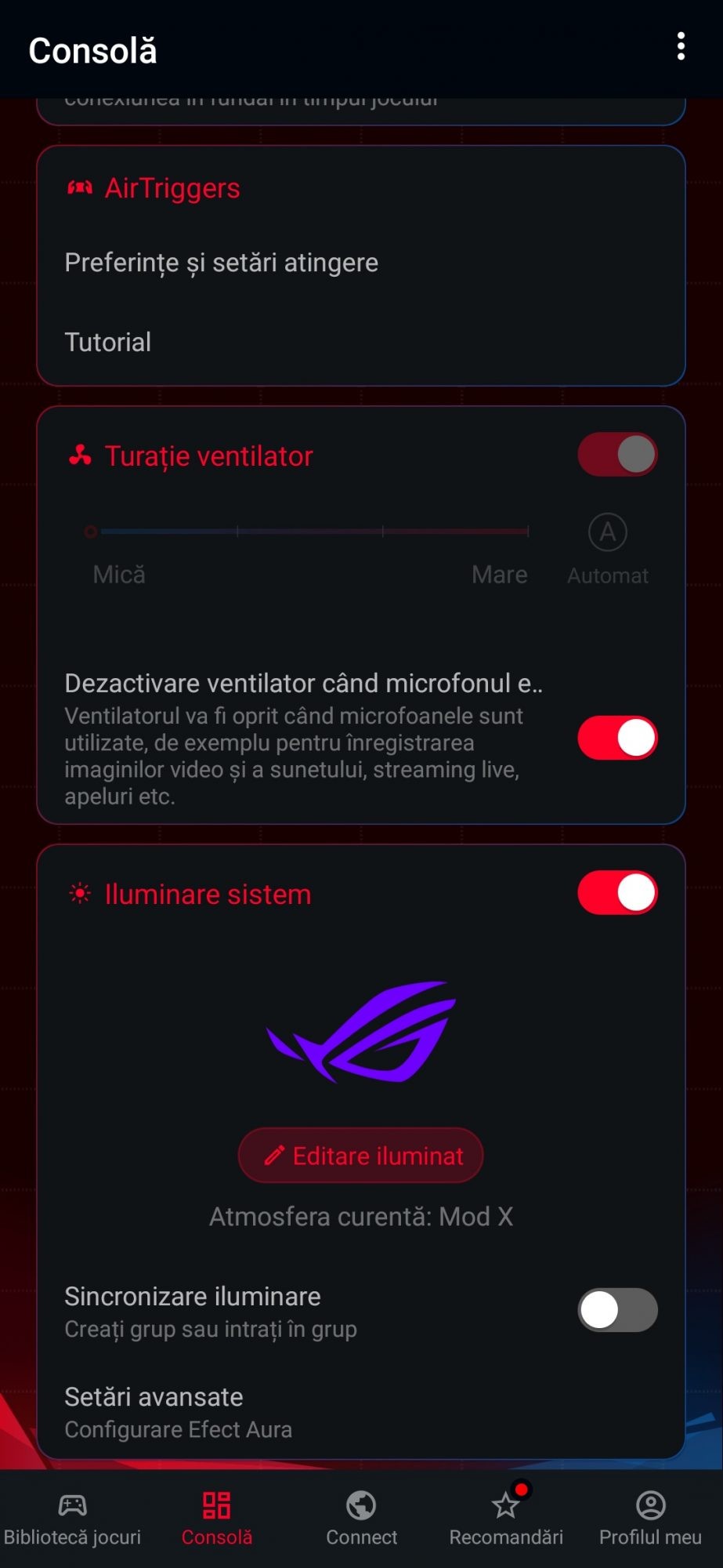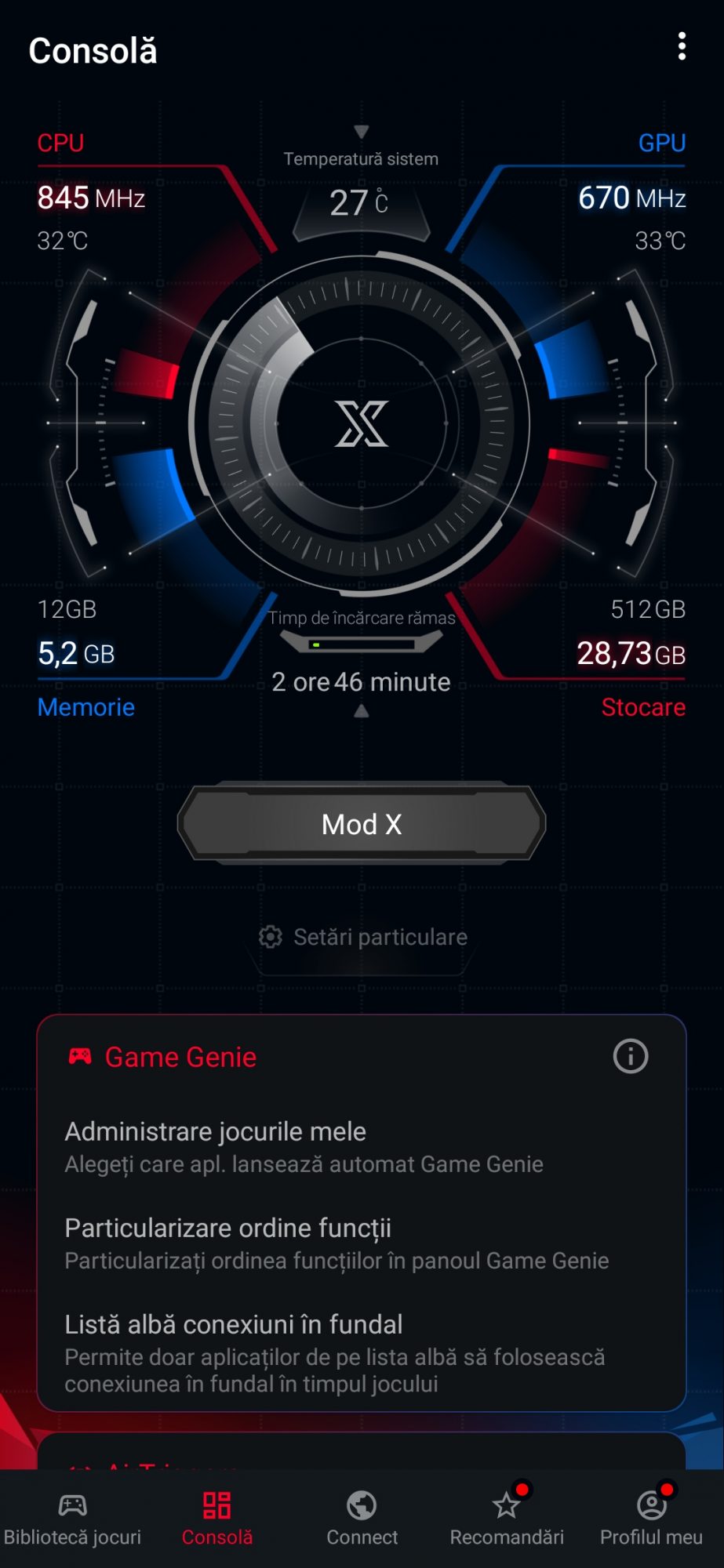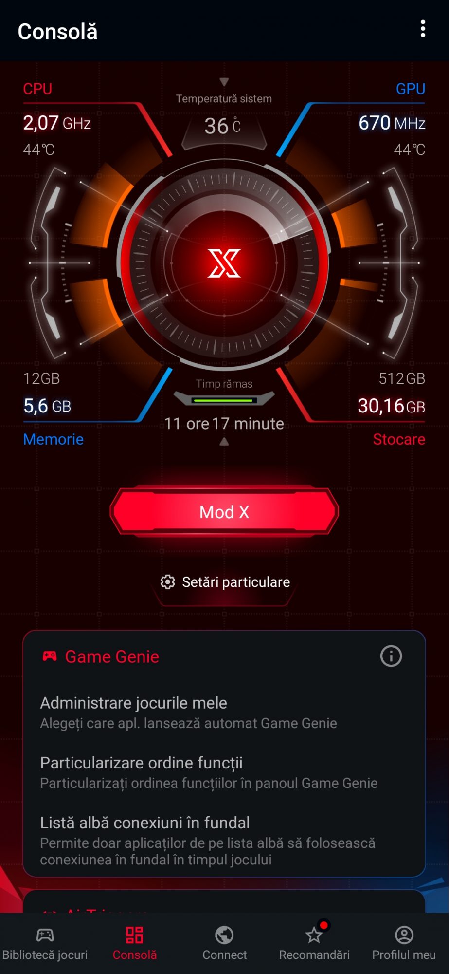 Fara Mod X si fara Armoury Crate ar fi fost un telefon normal cu un design aparte. Dar functiile oferite de acest software il fac cu adevarat un telefon de gaming. Faptul ca poti inregistra ceea ce te joci, ca poti sa mapezi tastele Air Trigger si sa le folosesti cum vrei tu sau ca ai acces deplin la setarile de grafica ale unui joc il fac complet diferit. O functie tare mi se pare intreruperea comutarii intre retele. De exemplu daca tu esti afara si te joci pe date mobile iar in casa dai de Wi-Fi, ca sa nu iti intrerupe jocul cateva secunde va continua sa mearga tot pe date mobile.
