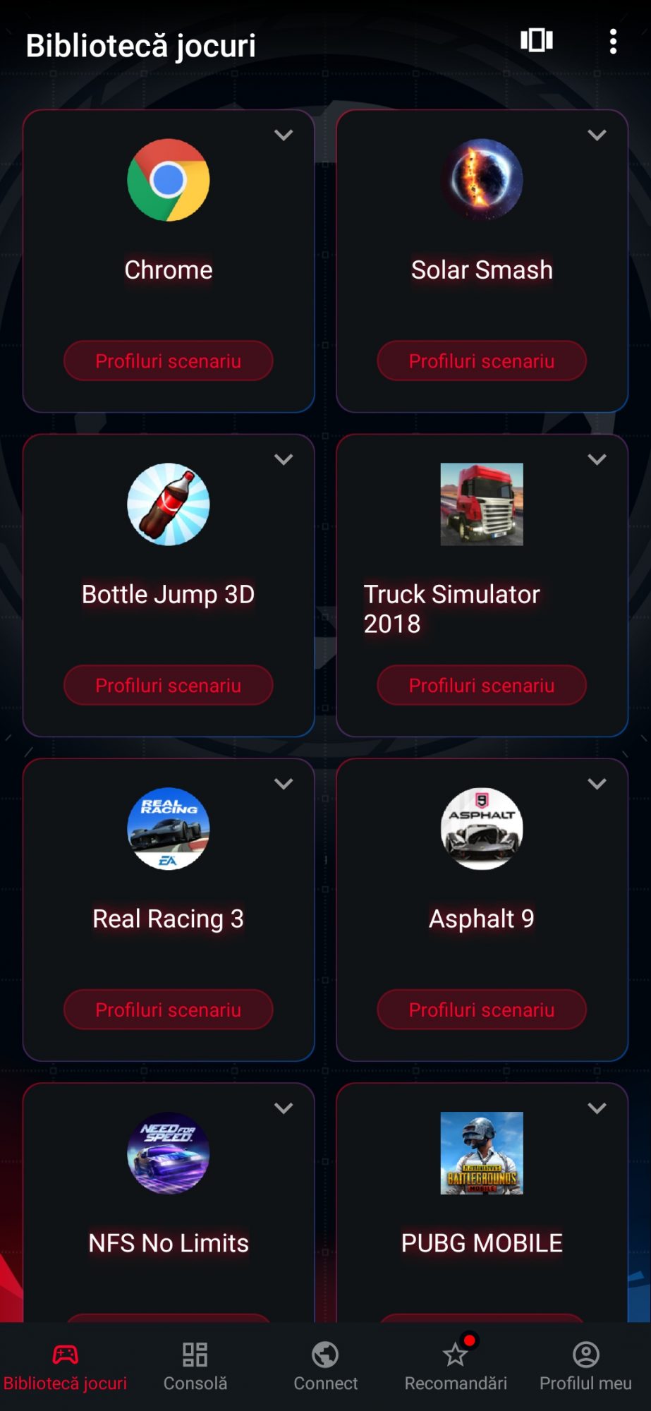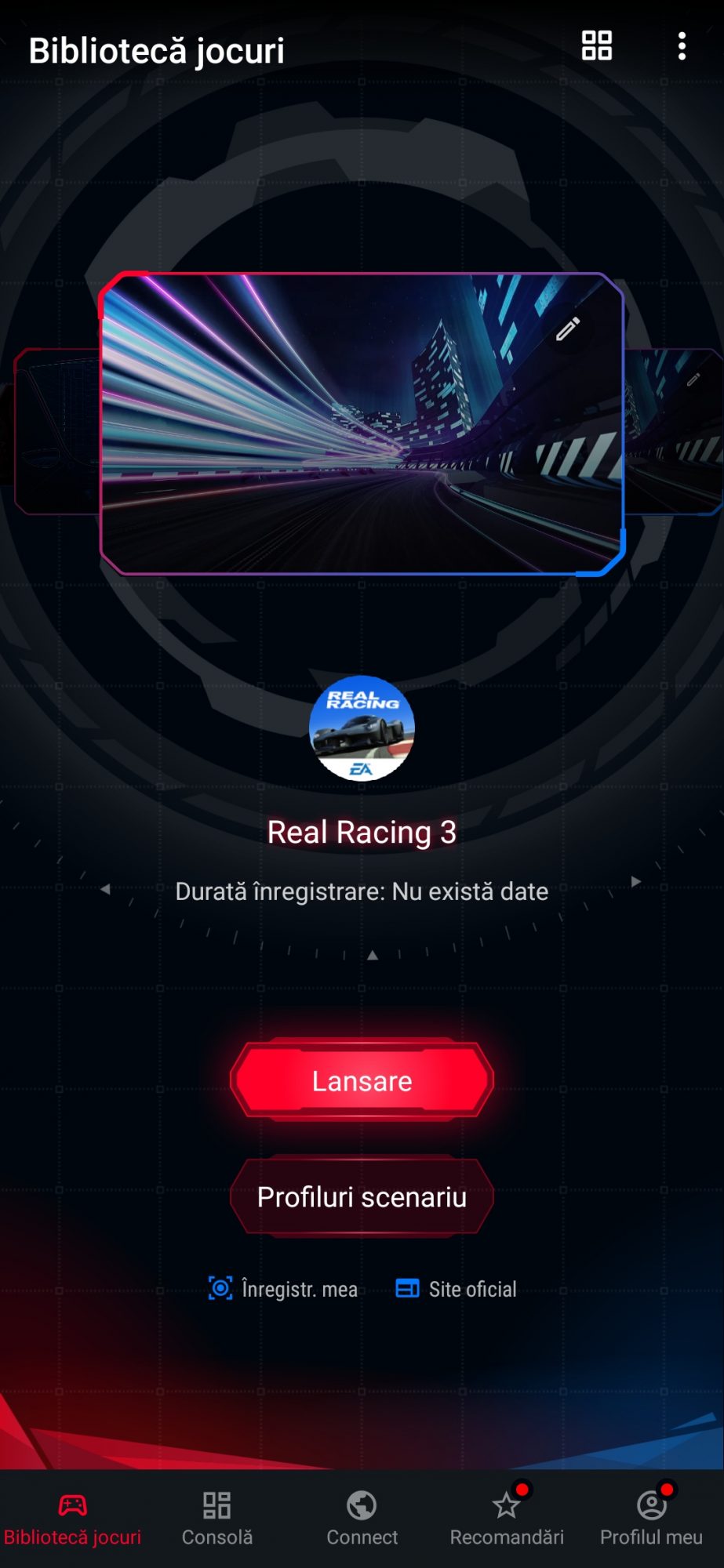 In mare parte nimic special fata de un alt telefon. Este un Android curat la prima vedere dar ascunde ceva interesant, ceva ce il face sa fie un ROG Phone. Este vorba de Armoury Crate, locul de unde iti poti personaliza si seta telefonul pentru fiecare joc in parte. Este locul de unde poti seta iluminarea, poti vedea statistici in timp real despre joc (FPS, frecventa procesor, temperatura) sau chiar sa inregistrezi ceea ce te joci.