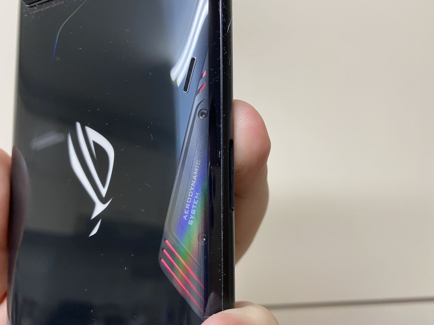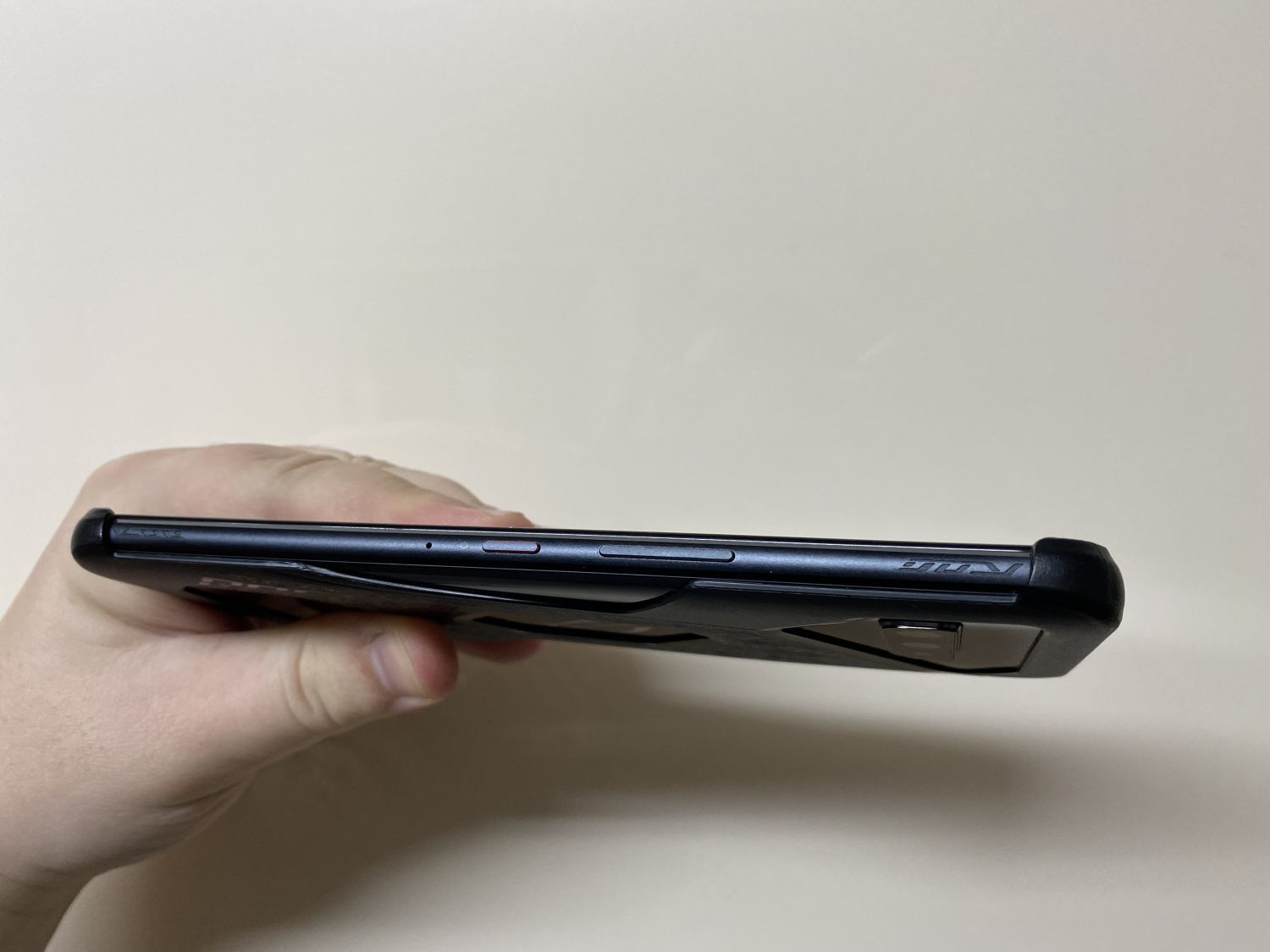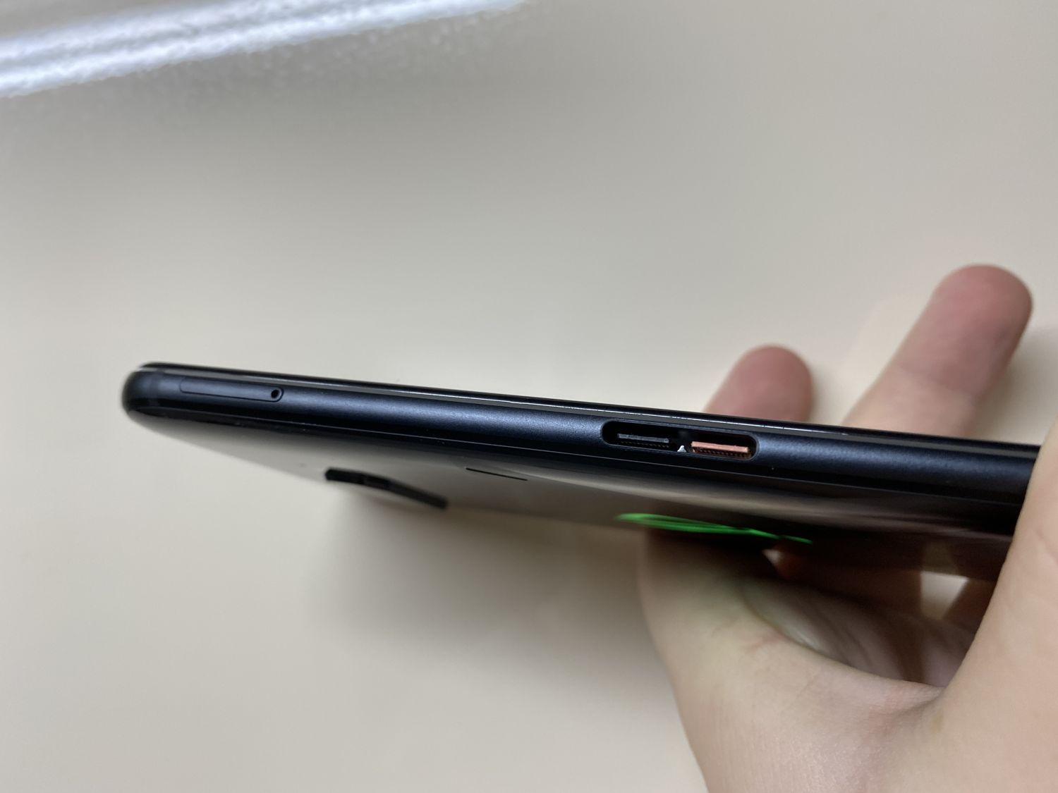 Pe partea stanga are un port USB Type C prin care telefonul se poate incarca atunci cand te joci. Este gandita in asa fel incat atunci cand te joci in mod landscape cablul sa vina in partea de jos si sa nu te incurce. Tot acolo se monteaza si ventilatorul din pachet care ajuta la racire. Mufa Type C principala este in partea de jos. Nu are jack pentru casti, iar butoanele de control sunt pe partea dreapta.