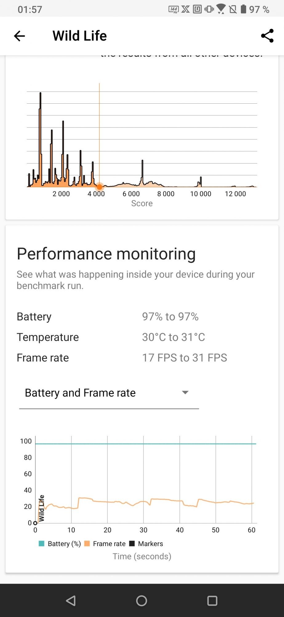 Bateria de 6000mAh mi-a oferit peste o zi de utilizare in conditiile in care ecranul a fost tot timpul pe 144Hz. La finalul zilei am ramas cu 40% autonomie dupa ce l-am folosit ca telefon principal. Am facut poze, l-am folosit pe Waze, retele sociale, chestii normale. 40% autonomie seara la ora 22:00 cu ecranul la 144Hz si Dark Mode.