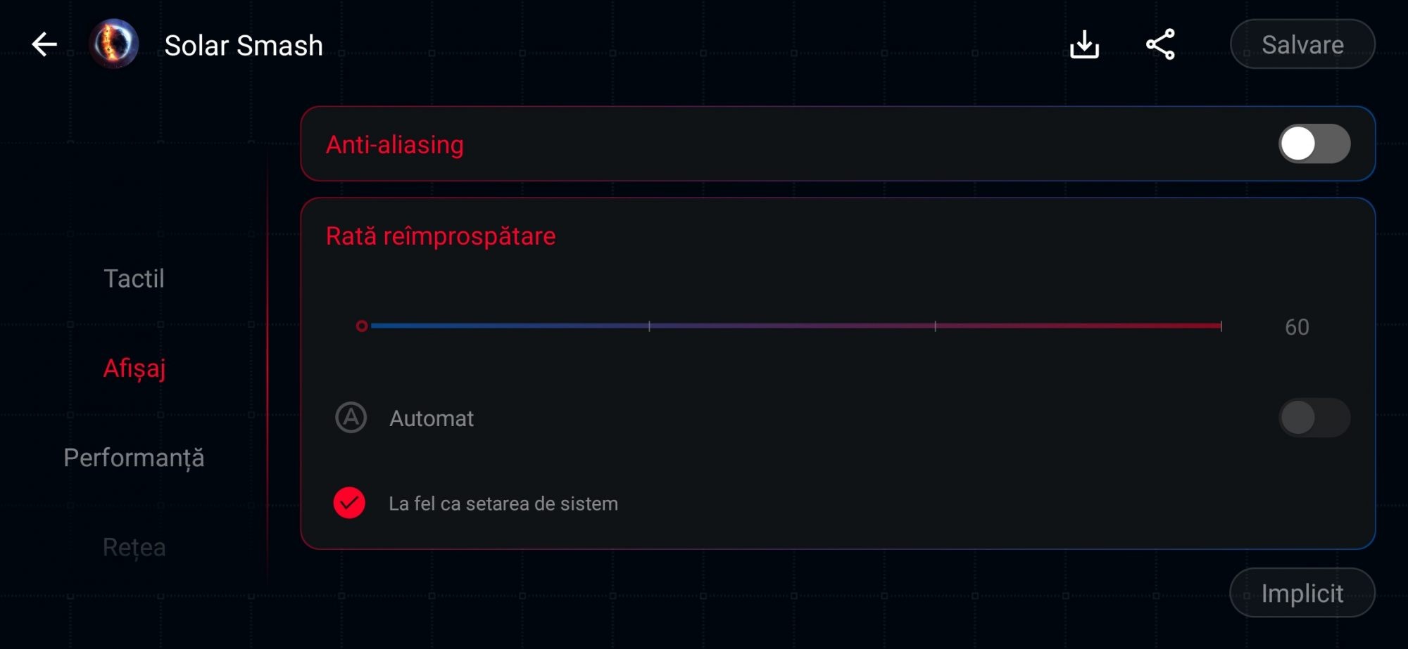 O componenta foarte importanta deoarece este un AMOLED de buna calitate dus la 144Hz si rezolutie 1080 x 2340 pixeli. Poti seta rata de refresh la 60Hz, 90Hz, 120Hz, 144Hz sau sa il lasi pe automat. Rezolutia nu se schimba si asta m-a bucurat enorm. Daca sunt diferente intre 60 si 144Hz? Oho, categoric. Imediat vezi diferenta.