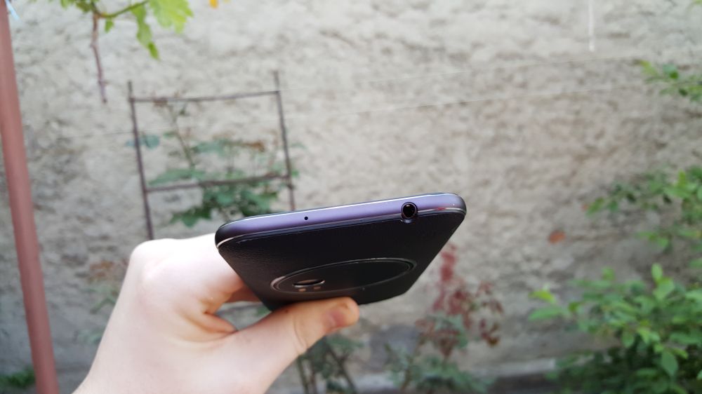 Este putin incomod pentru cei ce au mainile mici, insa daca ai niste maini putin mai mari, nu te va deranja deloc. Pe spate ai piele adevarata, iar pe margini metal pentru un grip si mai bun. In ciuda camerei mari de pe spate, telefonul nu se clatina atunci cand il pui pe o masa si folosesti ecranul. Asa cum am vazut la iPhone 6 de exemplu.