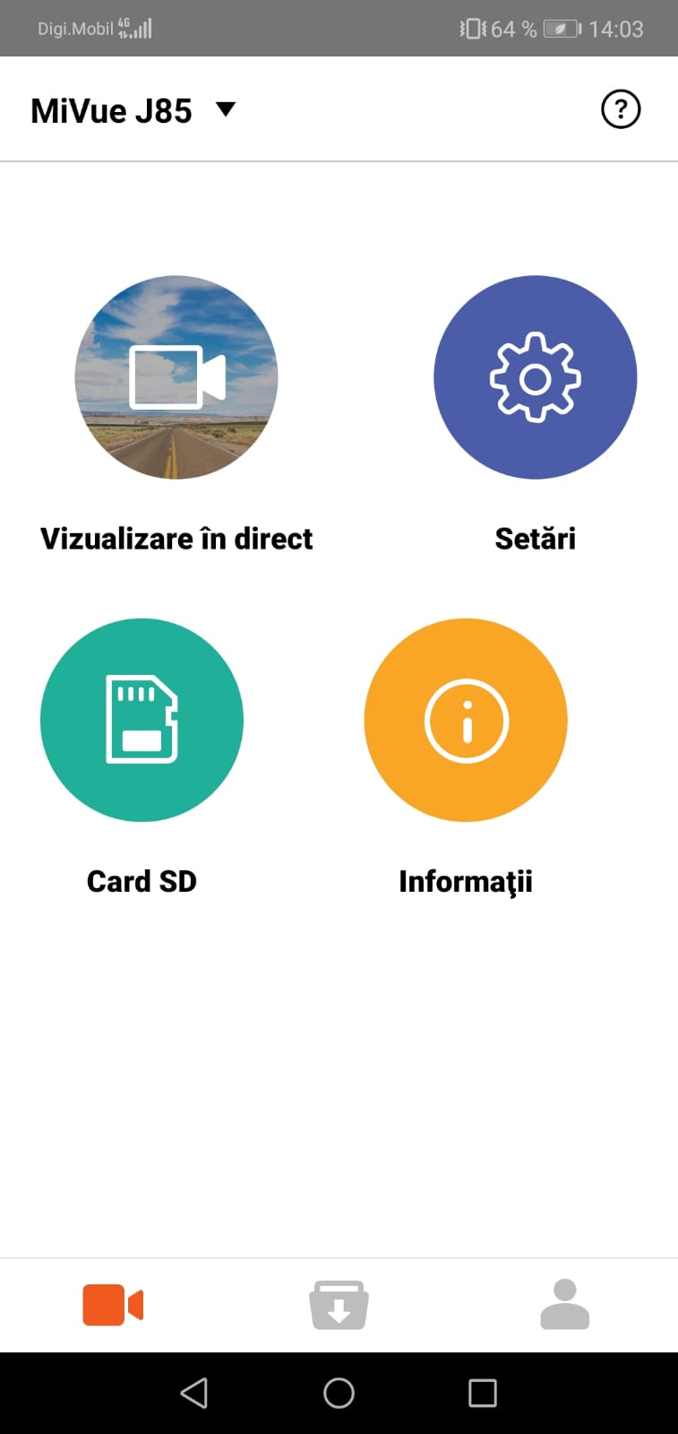 Mio J85 este o camera fara display si care functioneaza impreuna cu o aplicatie pe care o descarcati pe telefon. Este foarte simpla si intuitiva si va las cateva capturi de ecran mai jos.