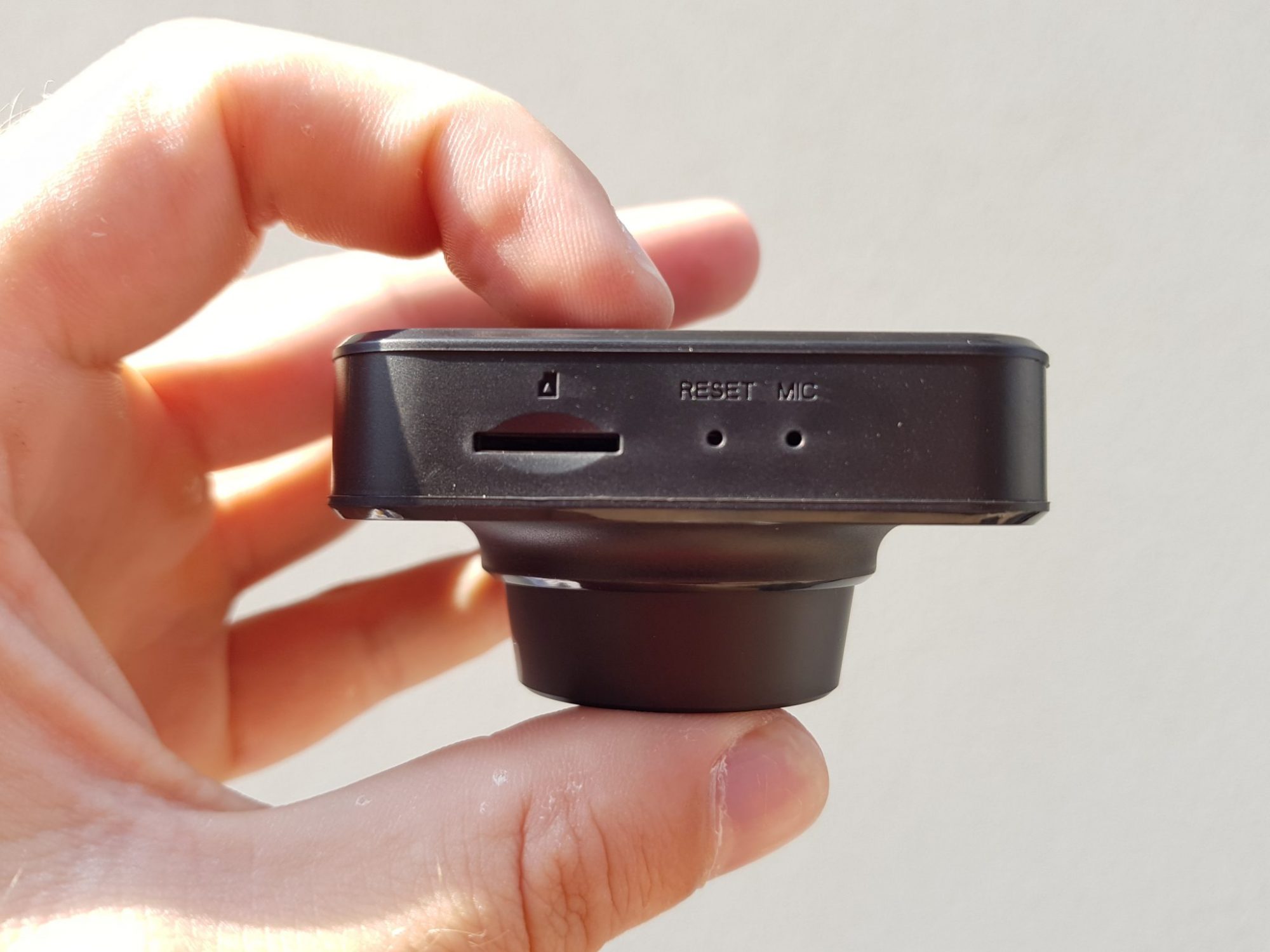 R200 este o camera de mici dimensiuni: i se aplica perfect proverbul platesti cat face. Prinderea de parbriz este asigurata printr-un suport cu ventuza, care pastreaza camera destul de fixa datorita greutatii mici. Dispune de un display cu o diagonala de 2 inch cu rezolutie 320×240, un unghi de vizibilitate de 140 de grade si filmeaza la o rezolutie Full HD si 25 de cadre pe secunde, compresie H.264. Senzorul integrat detecteaza acceleratia, franarea brusca sau o situatie de urgenta. Inregistrarile se fac pe un card micro SD cu o capacitate maxima de 64 GB. Eu am folosit un card de 32 GB si mi-a calculat ca pot filma in total 4 ore si 30 de minute. Va recomand acesta. Bateria are o capacitate de 180mAh, ofera filmare in bucla la 1/3/5 minute cu protectie la suprascriere.