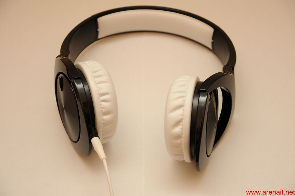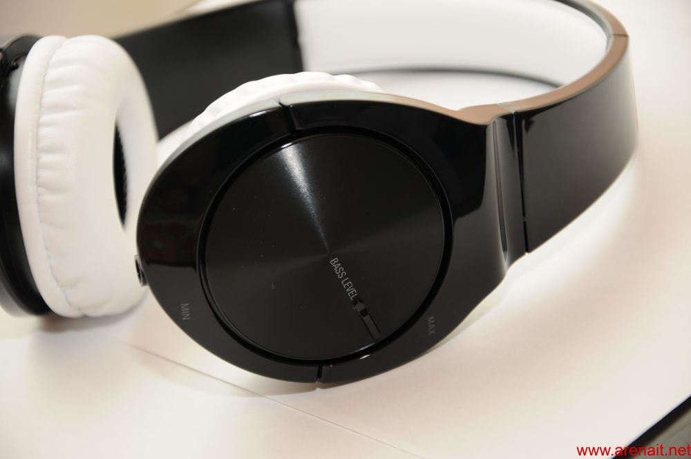 Pe casca stanga se afla un potentiometru pentru reglasea bass-ului. Acesta isi face treaba foarte bine si ofera un boost de 10%. Il tin la maxim caci nu imi afecteaza cu nimic claritatea asa cum m-as fi asteptat. Tot pe casca stanga se afla si jack-ul pentru cablu. Da, cablul este detasabil astfel ca daca se rupe nu trebuie sa schimbati castile. Pe partea opusa nu se afla nimic ci doar este desenat numele companiei. Per total design-ul este placut. Faptul ca sunt glossy e cu dus si intors caci arata bine, dar se murdaresc repede. Cum eu le folosesc si la PC si pe strada trebuie sa am grija mereu sa arate bine. Imi este teama de acel alb care se poate transforma intr-un galben sau gri…Sa speram ca nu. Faptul ca sunt incomode la inceput se rezolva cu timpul.