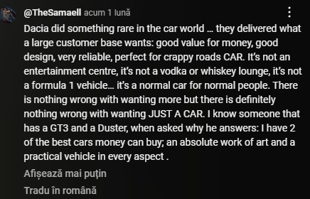 Duster 3 merita banii si consider ca primesti multa masina si dotari de bun simt. N-a zis nimeni ca trebuie sa cumperi modelul de top la 28.000 euro. Poti alege si varianta de 20.000 euro sau 24.000 euro.