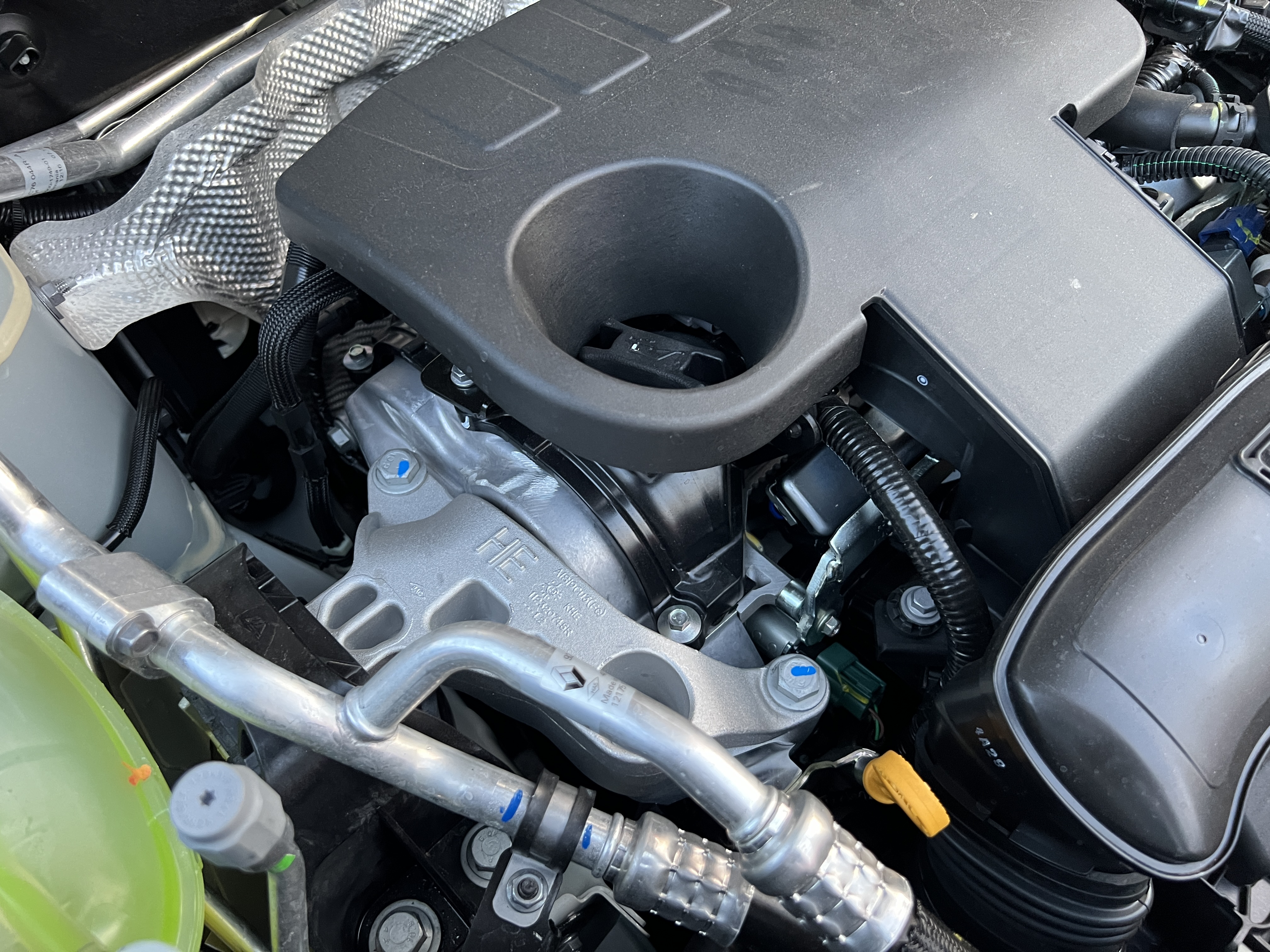 Discutam despre un motor clasic, fara turbina, de 1.6 litri, cunoscut in alianta drept HR16DE sau Renault H4M. Este un motor cu 16 supape DOHC, distributie variabila a supapelor, doua injectoare pe cilindru pentru economie si eficienta, are o cursa de 83.6mm si produce intre 103CP si 118CP in functie de varianta, la 4000RPM. Varianta pe care o avem noi este una noua, speciala pentru motorizarile hybride E-Tech cum este si in acest caz. Produce 90CP la 5600RPM si 144Nm cuplu la 3200RPM.