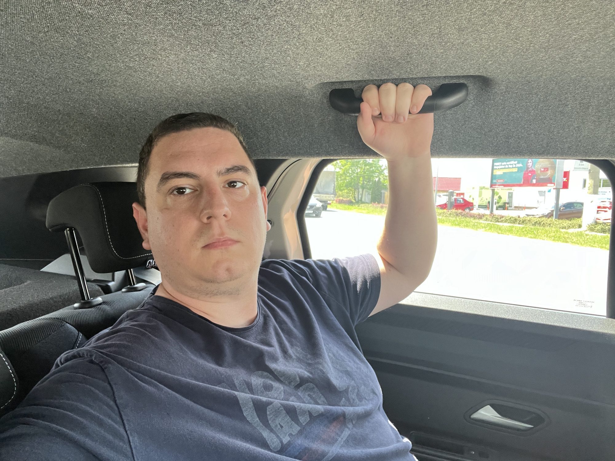 - Senzatia la volan este foarte placuta. Practic nu simti ca esti intr-un Duster. Spun asta pentru ca mai conduc des: Toyota RAV4 2022, Honda CR-V 2022, Caddy 2015, Mazda 3 2022. Sunt masini cu care merg des deci am o idee spre ce compar. Asadar, senzatia din noul Duster este similara din punctul meu de vedere cu senzatia din RAV4. Sunt cam aceleasi scaune si aceeasi pozitie la volan. In Honda stai mai bine decat in Toyota, parerea mea. Simti ca esti imbracat mai bine de masina si ai o senzatie de intimitate. Plafonul inchis la culoare, geamurile o idee mai inguste, te fac sa te simti mai protejat si daca inchizi ochii poti crede ca esti intr-o masina mai scumpa. Daca si insonorizarea era la acelasi nivel, puteam spune fara probleme ca senzatia este una premium.