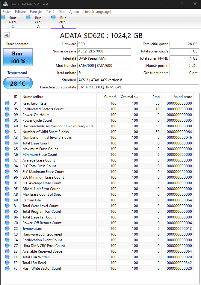 Promite viteze de pana la 520MB/s, deloc rau si mai ales ca vorbim despre o interfata USB 3.2 Gen2 intalnita tot mai des pe PC-urile moderne. Totusi, pentru a mentine un pret mai mic probabil, nu s-a implementat un USB C clasic in partea care intra in SSD ci o mufa USB 3.2 mai veche.Aici consider ca este singurul minus al acestui SSD.