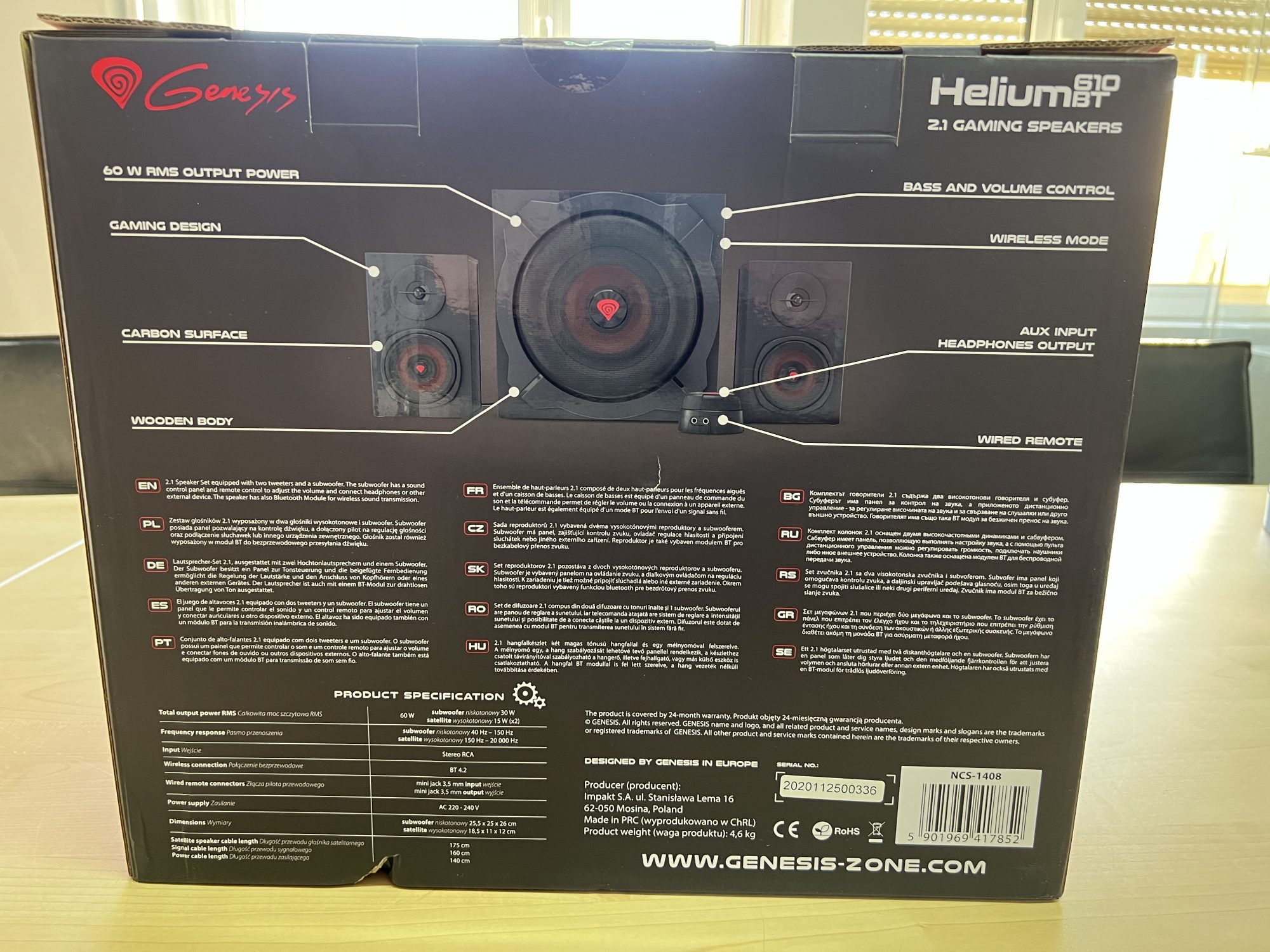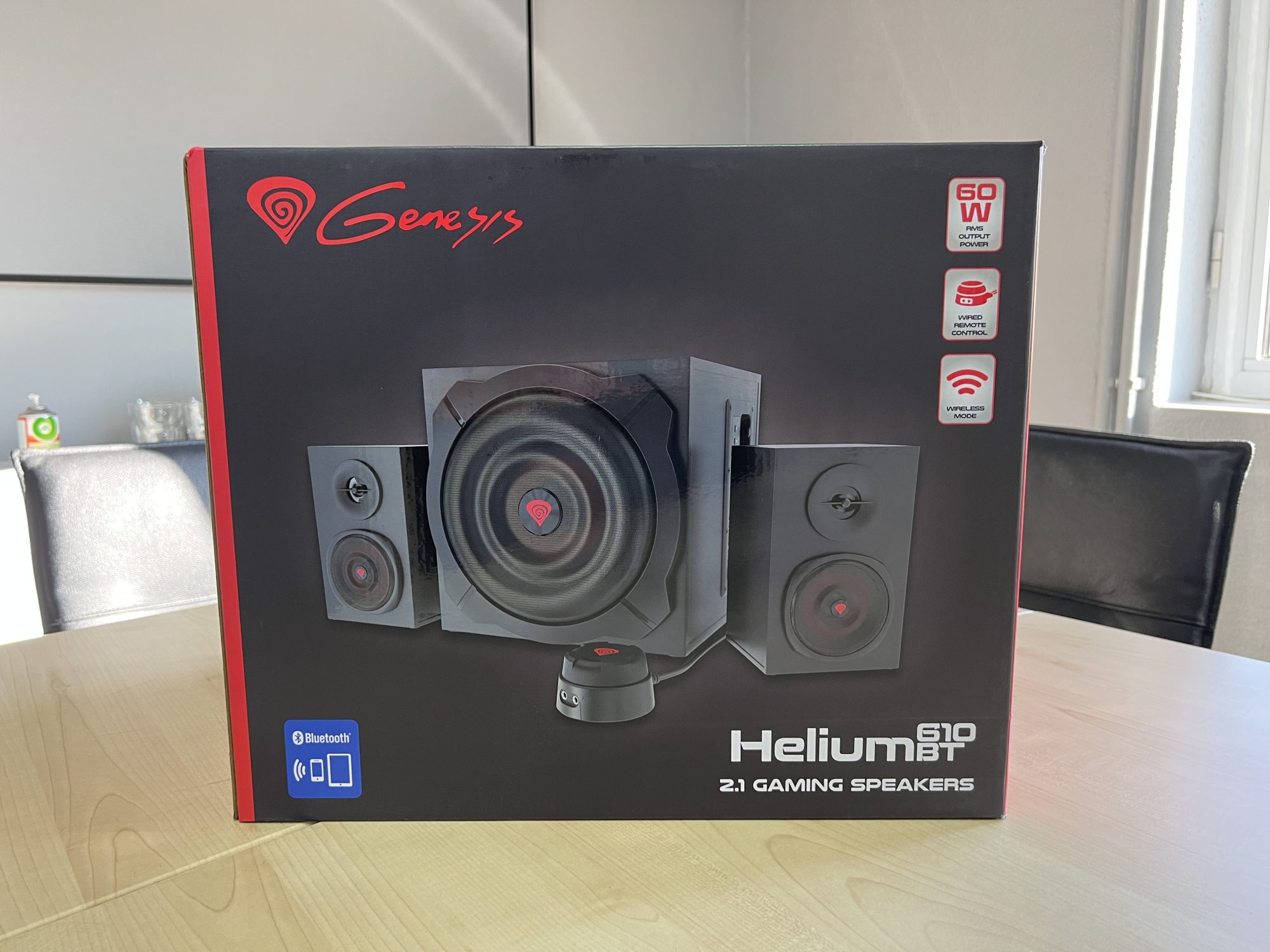 Genesis Helium 610BT este un sistem 2.1 de 60W, telecomanda pe fir si functie Bluetooth. Nu este o bestie, dar se aude foarte bine. Costa la eMAG 330 de lei si merita toti banii.