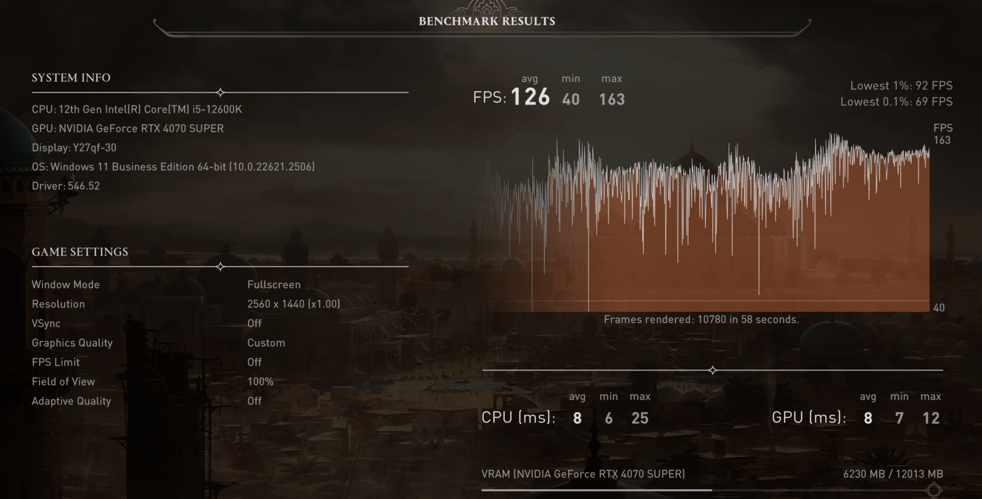 - Assasins’s Creed Mirage – 126FPS