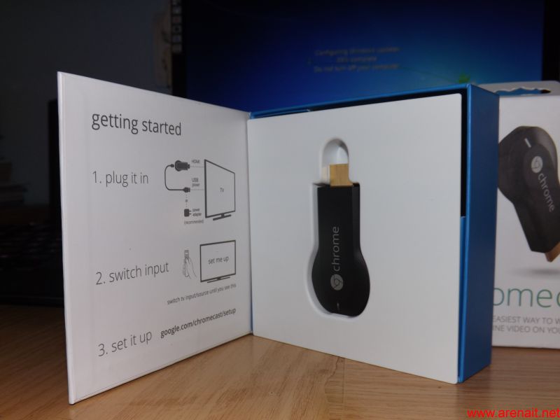 Google Chromecast este un dongle cu mufa HDMI ce se introduce in televizor, iar mai apoi se poate conecta cu orice dispozitiv cu sistem de operare Android mai nou de 4.0 si iOS. Acesta a fost lansat in iulie 2013 si costa doar 35 de dolari. Este practic concurenta lui Apple TV care costa 99 de dolari, cel din urma fiind mai mare, dar si cu cateva aplicatii la pachet.