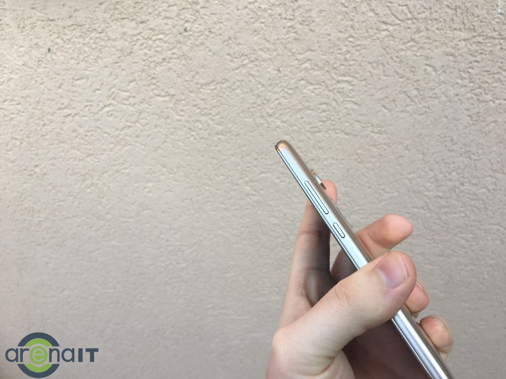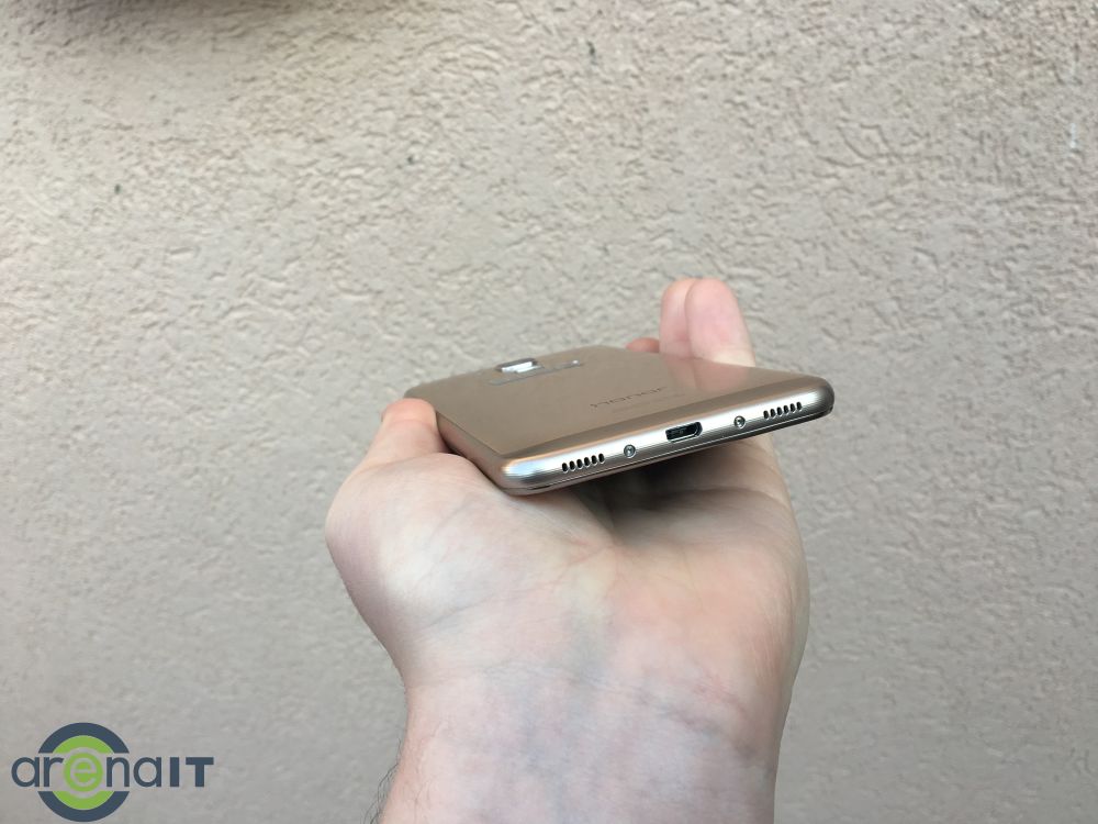 Pe lateralul din dreapta sunt amplasate butoanele de volum si power, sus este jack-ul pentru casti, in lateralul stanga sertarul pentru SIM, iar pe buza de jos grila pentru difuzor si micro USB-ul. Ma declar foarte incatat de design. Este un telefon care merita respect la acest capitol chiar si de la jucatorii din liga superioara precum S7, iPhone 7 sau HTC. Honor 7 Lite nu arata deloc ca un telefon de buget.