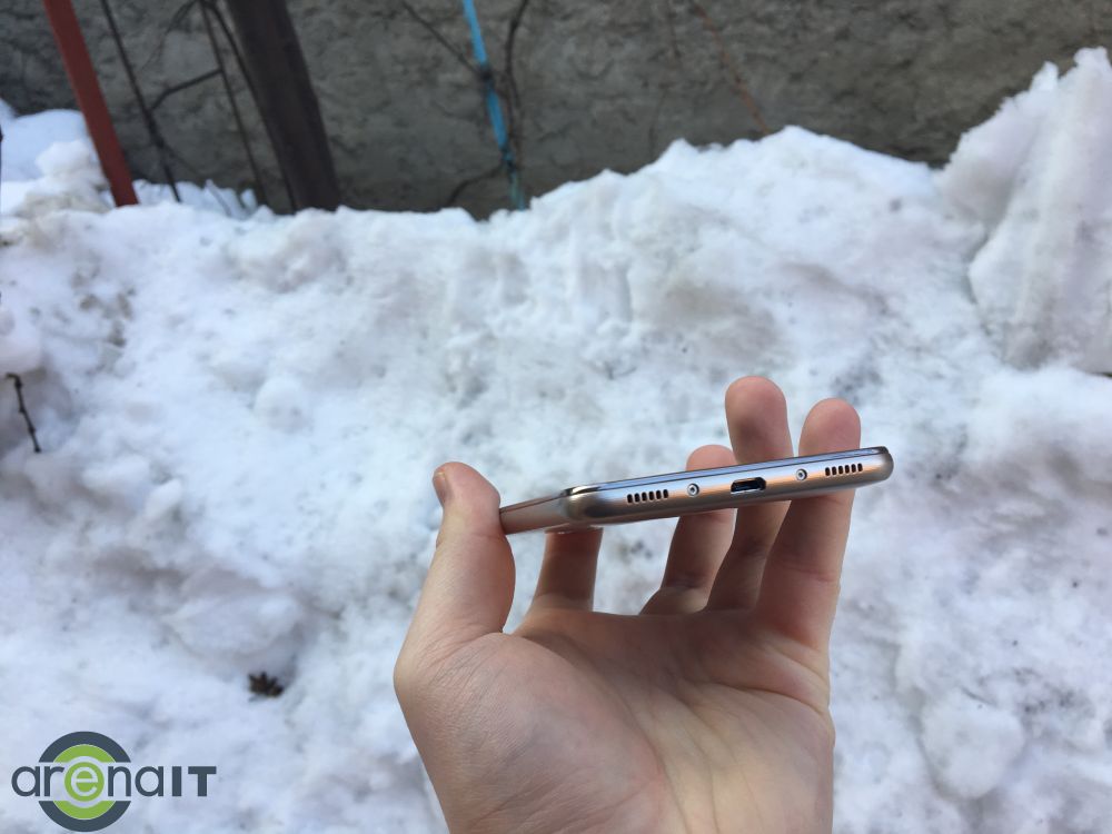 Cea mai mare parte din spate este metal, insa marginile si zonele superioare/inferioare sunt din plastic. Dar si acel plastic a fost tratat incat sa para metalic la atingere. Exact cum a procedat LG pe G5. Este foarte placut la atingere si are o forma compacta, usor de tinut cu o singura mana. Pe partea din fata este sticla de sus pana jos, nimic iesit din comun. Butoanele de navigare sunt virtuale.