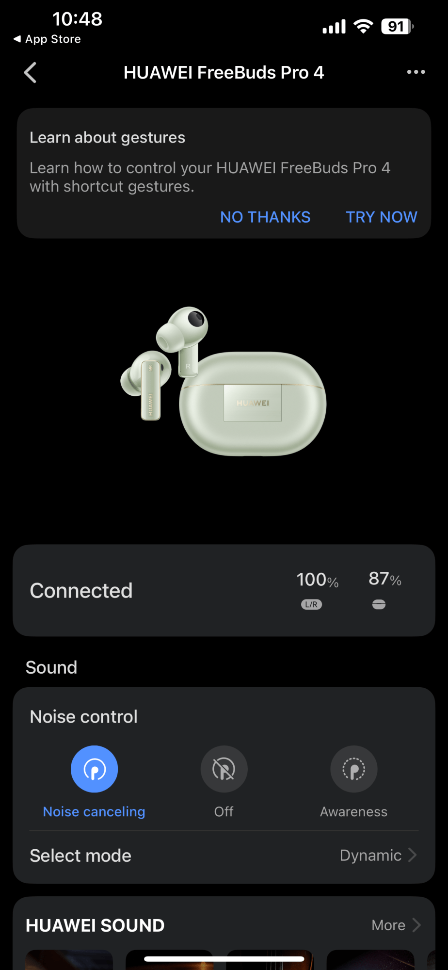 Revenind la FreeBuds Pro 4: ele integrează drivere de 11 mm cu patru magneți, o diafragmă planară și livrează un sunet fantastic, de la 14 Hz până la 48.000 Hz. Ce înseamnă asta? Un bass profund și puternic, dar și sunete înalte calde și bine definite.