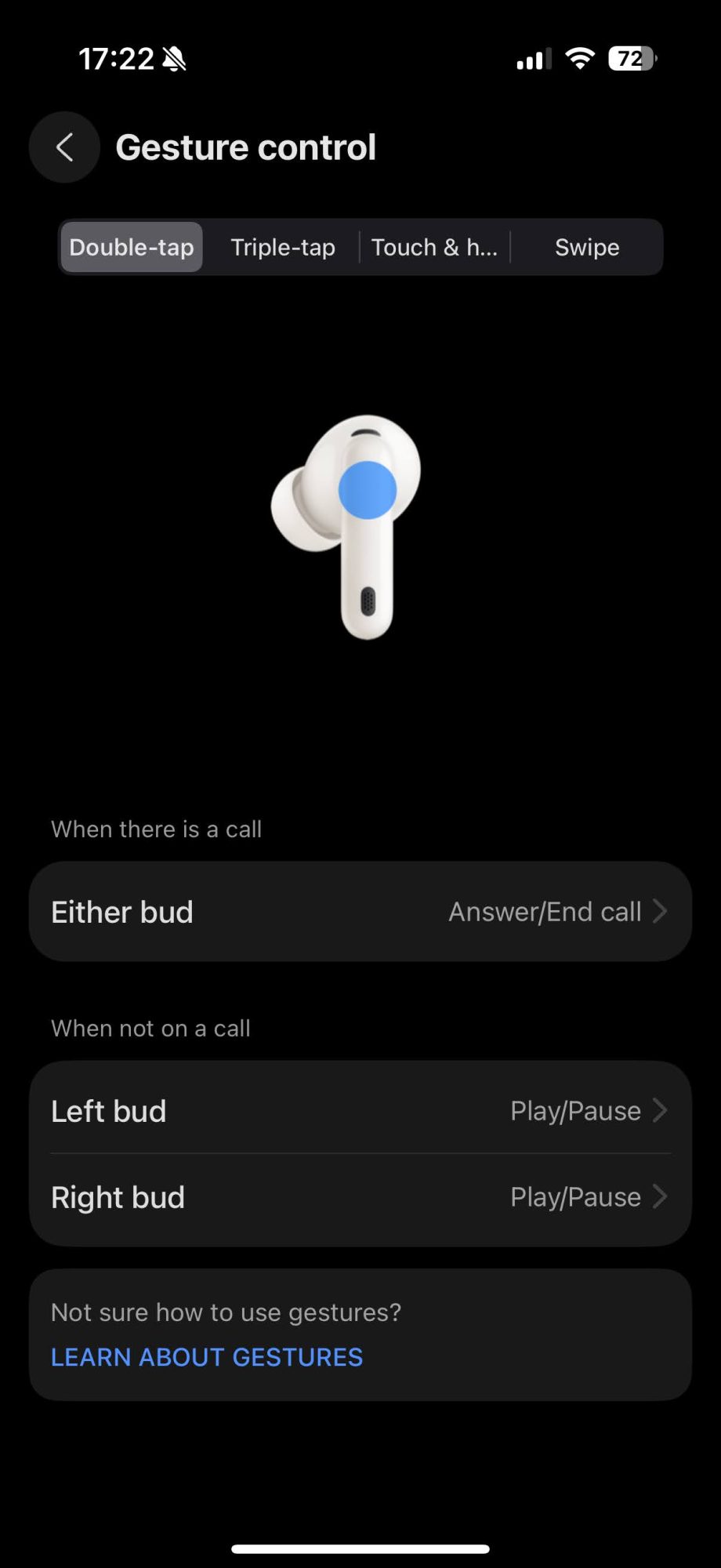 Însă totuși mai au de lucru la aplicație pentru că, chiar dacă eram cu căștile conectate la telefon și sunetul mergea spre ele, aplicația nu le vedea și mă îndemna să le reconectez. Nu-i o problemă neapărat, că poți face toate setările de pe căști (prin atingeri), dar e un lucru de îmbunătățit.