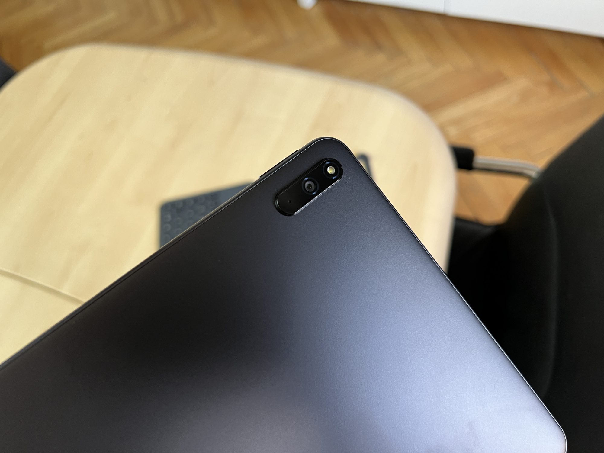 Huawei MatePad 10.4 este reusita si la acest capitol. La prima vedere iti lasa impresia ca este o tableta din metal, insa este un plastic foarte bine finisat si cu imbinari excelente la coluturi si la ecran. Nu are nici un luft, nu te taie nimic la mana, totul este placut la atingere si ofera senzatia de robustete.