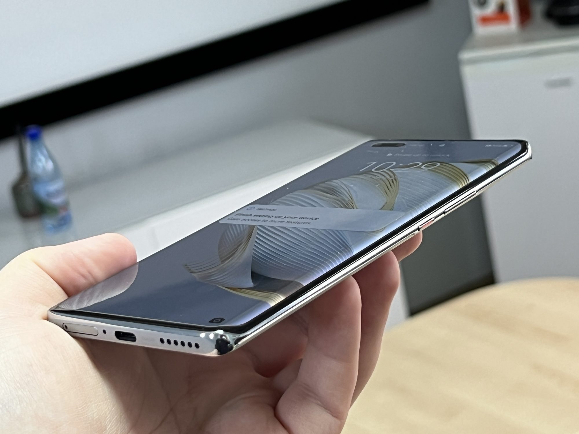 Am avut un deja-vu cand am vazut ecranul. Nu stiu de ce, dar m-am intors in timp pe vremea lui Galaxy S6 Edge. Nu este nimic rau in asta. Ecranul este un OLED de 6.78 inch la 120Hz si rezolutie 2652 x 1200 pixeli. Doar ca este curbat pe margini. Daaa!