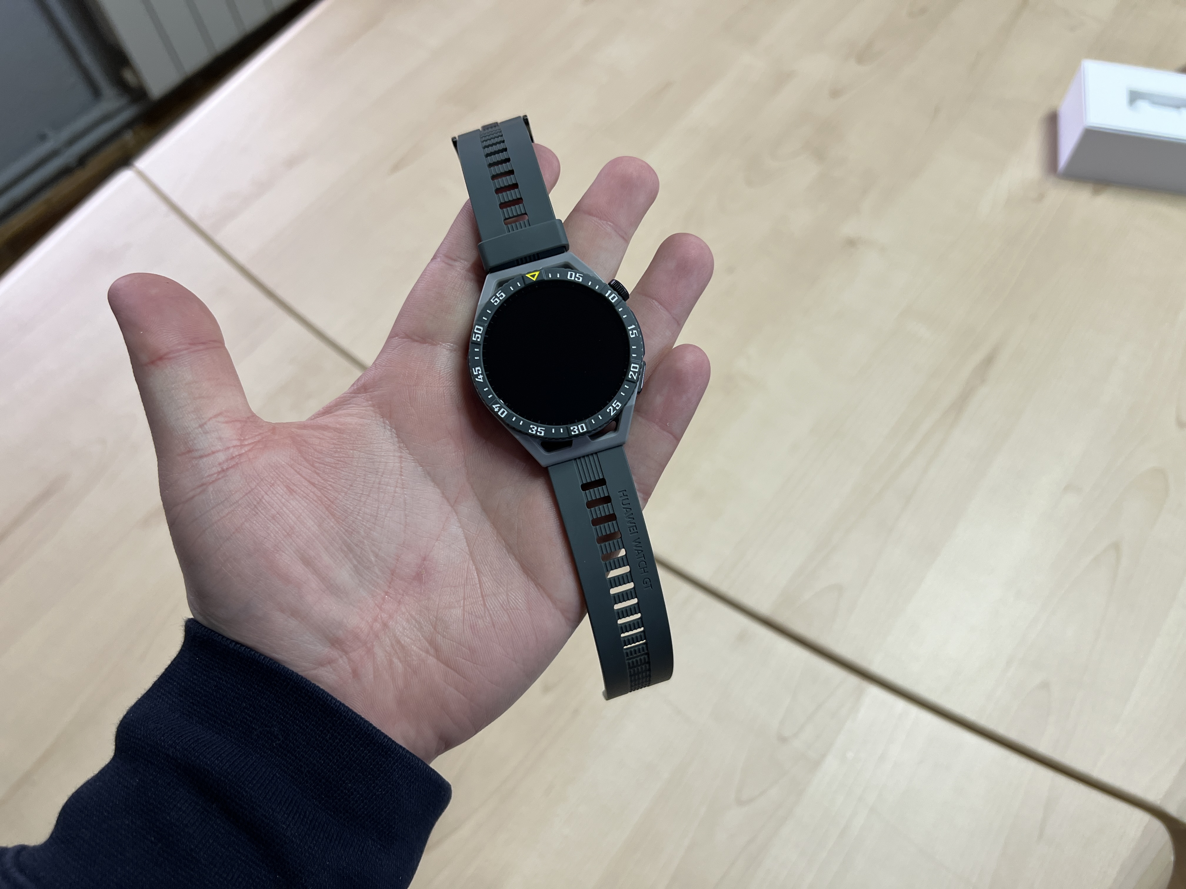 GT2 vine cu curea de piele, dar eu i-am luat si o curea metalica si e mult mai elegant decat Samsung Galaxy Watch4 sau GT3 SE.