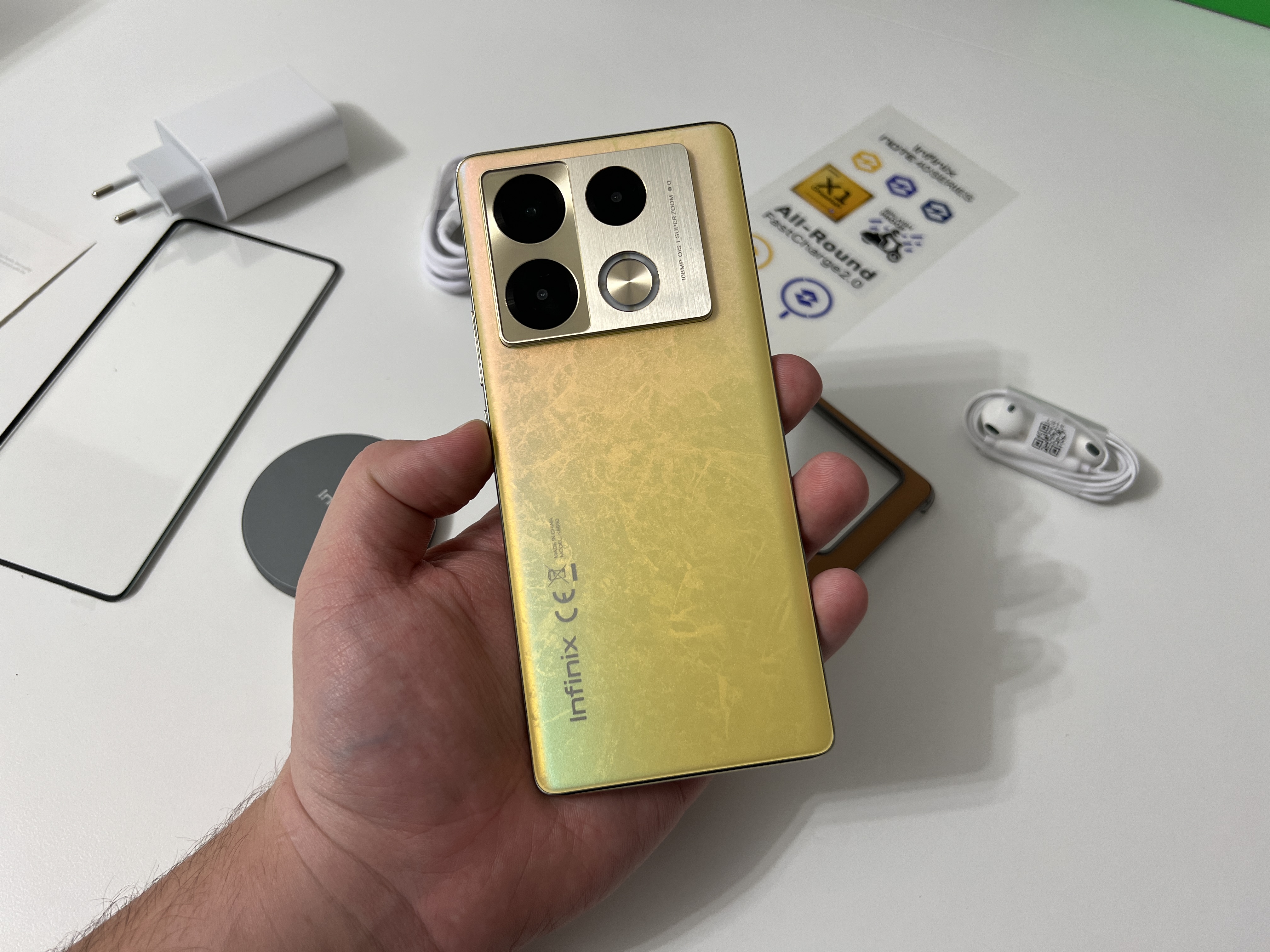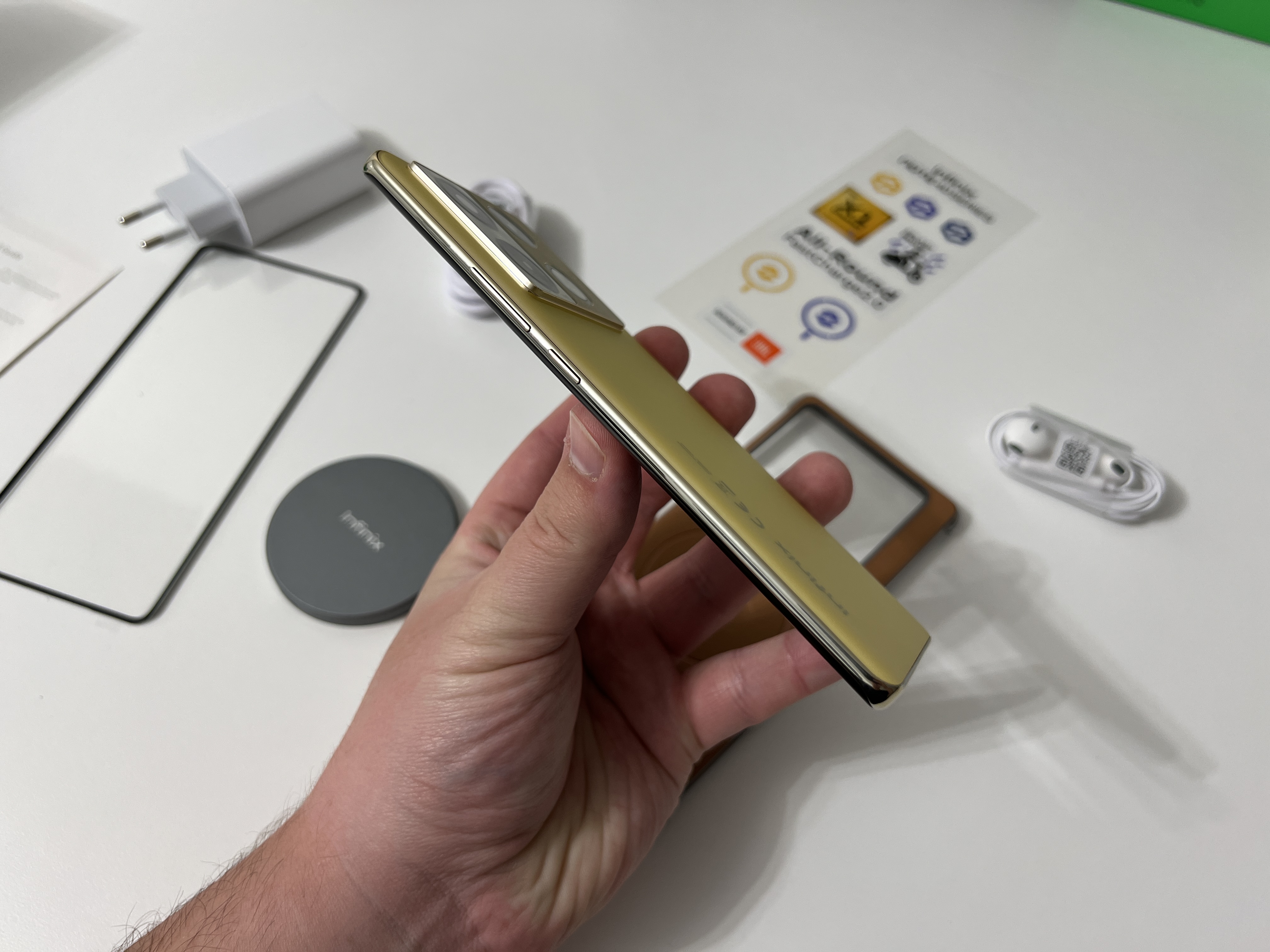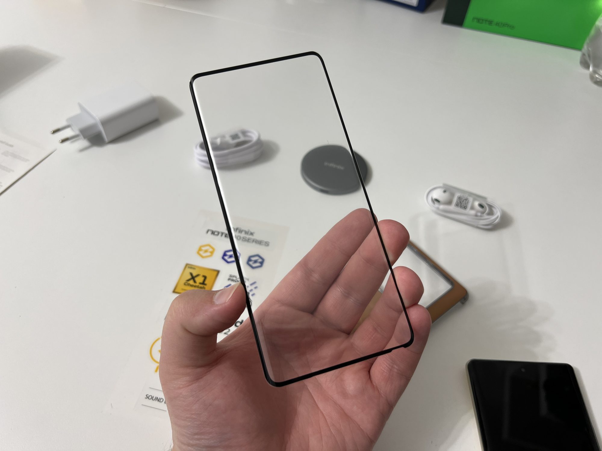 Pachetul celor de la Infinix se afla in antiteza cu ceea ce producatorii consacrati ofera in acest moment in piata. Toti ne pacalesc cu ambalaje si continut ecologic, pachete cat mai minimaliste (lasa bre ca nu-ti trebuie incarcator, da-i asa) si cu vrajeala ca nu ai nevoie de accesorii pentru ca le ai deja.