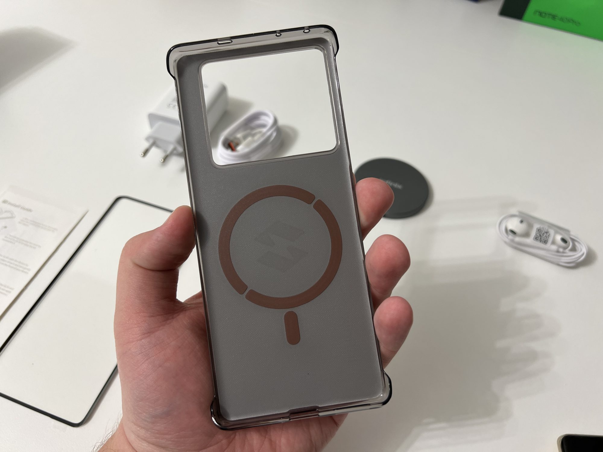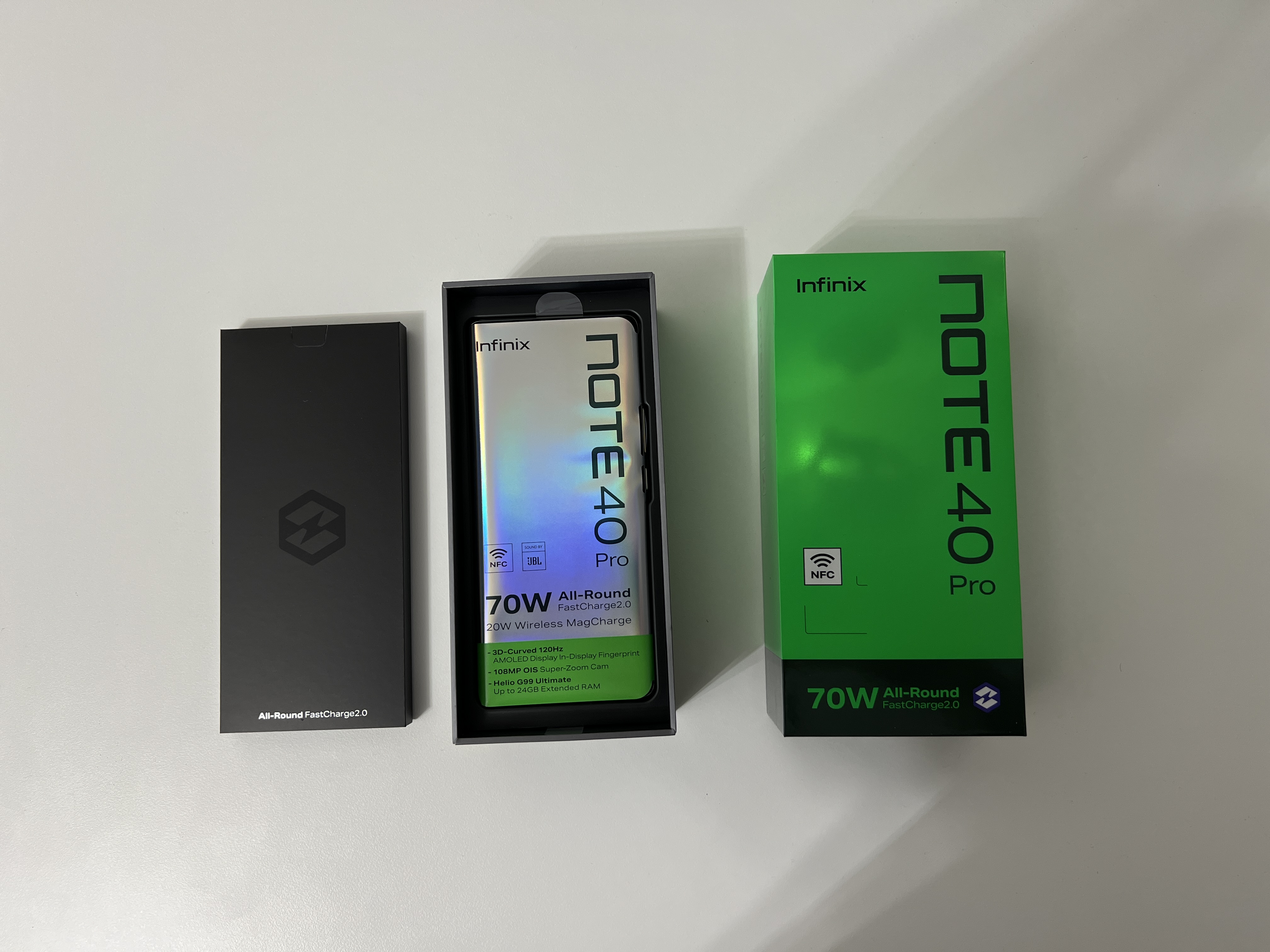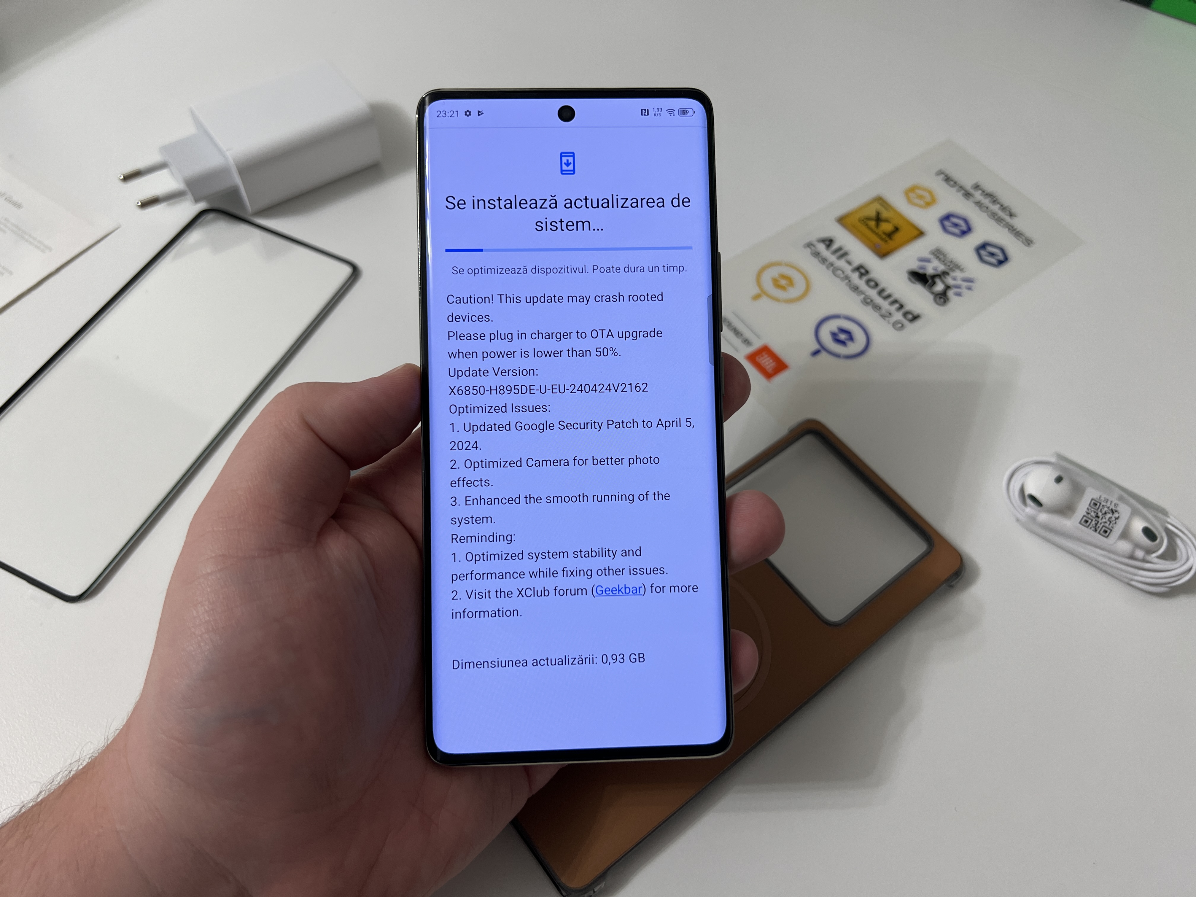 Pachetul celor de la Infinix se afla in antiteza cu ceea ce producatorii consacrati ofera in acest moment in piata. Toti ne pacalesc cu ambalaje si continut ecologic, pachete cat mai minimaliste (lasa bre ca nu-ti trebuie incarcator, da-i asa) si cu vrajeala ca nu ai nevoie de accesorii pentru ca le ai deja.