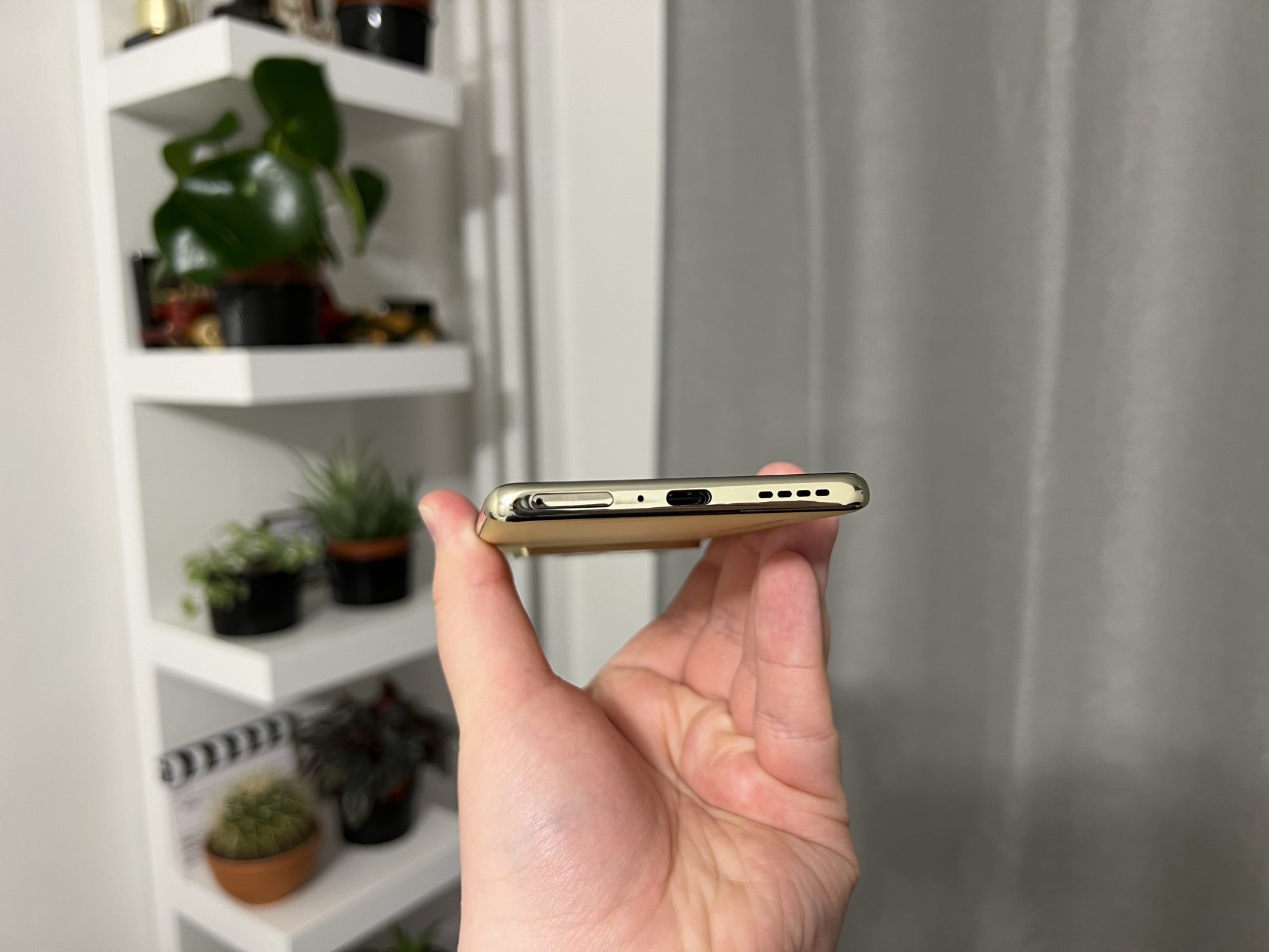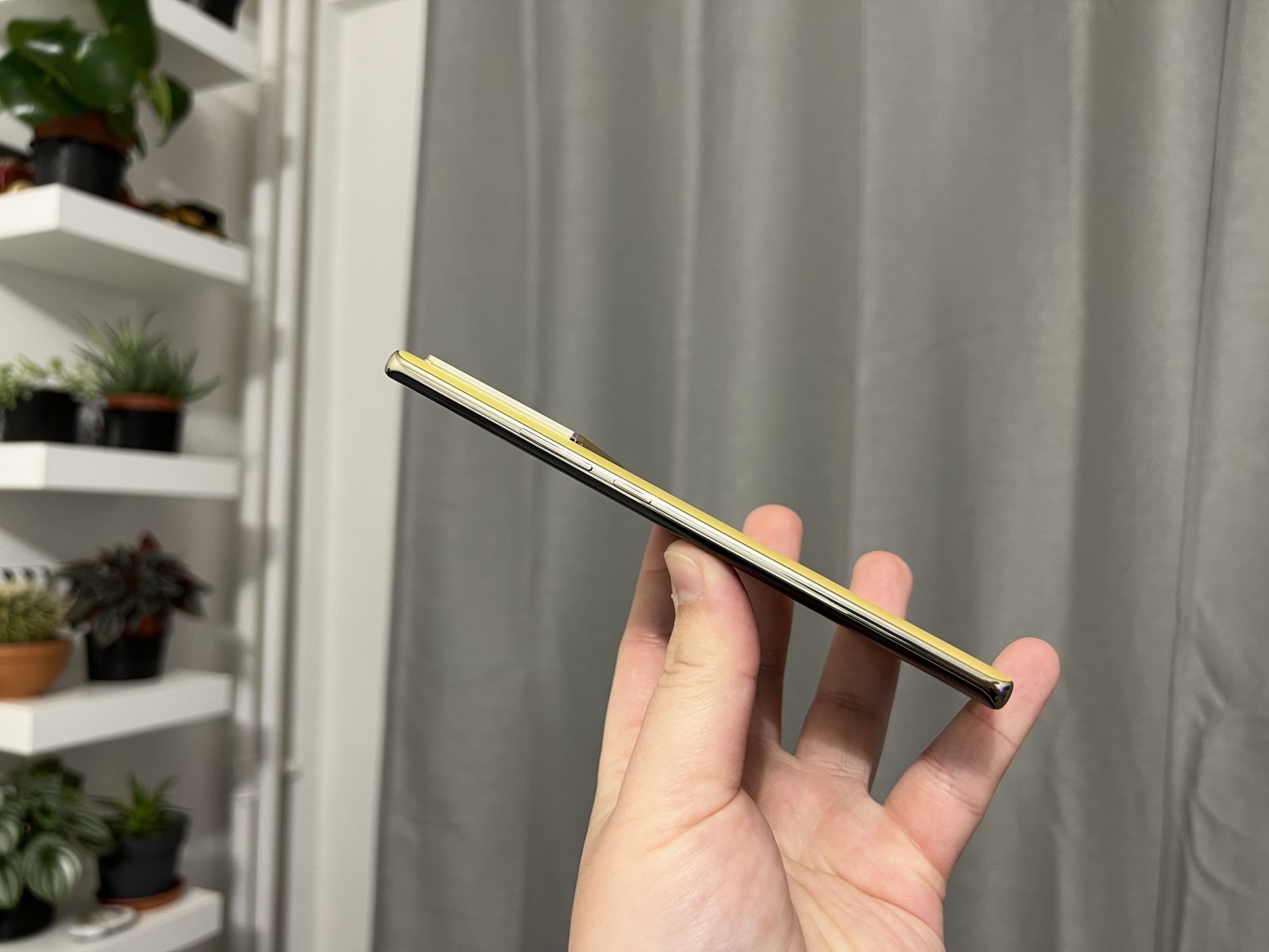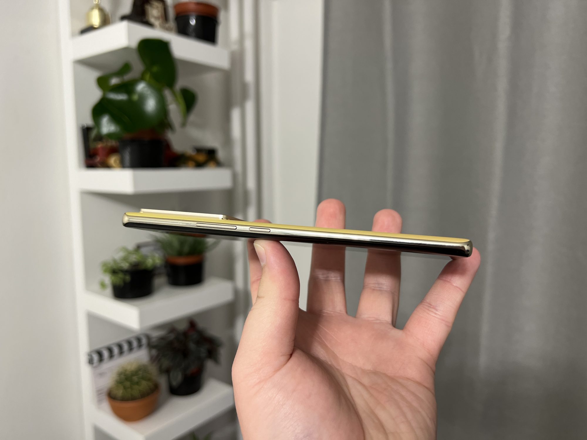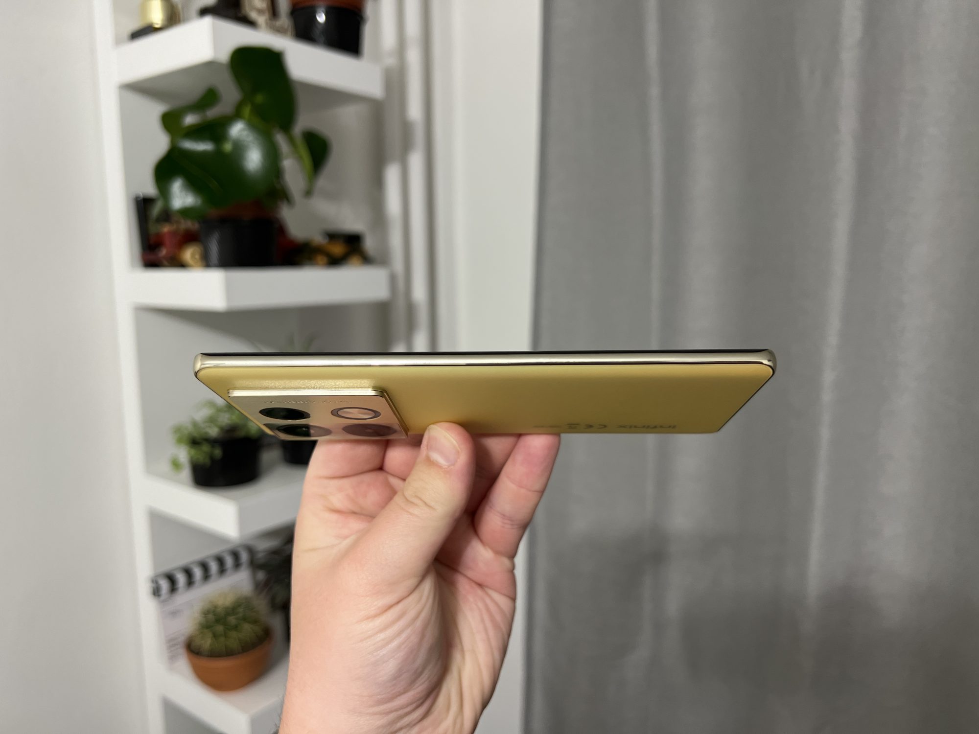 Not bad! Sa stiti ca telefonul nu arata rau, insa ma duce putin cu gandul la niste modele mai vechi de Samsung Note. Este un telefon destul de lat si cu ecran curbat, ceea ce inseamna ca nu este usor de tinut in mana si este si foarte alunecos fara husa. Spatele este dintr-un plastic realizat excelent care te pacaleste ca este sticla. Are si o textura interesanta si niste reflexii dragute in bataia soarelui.