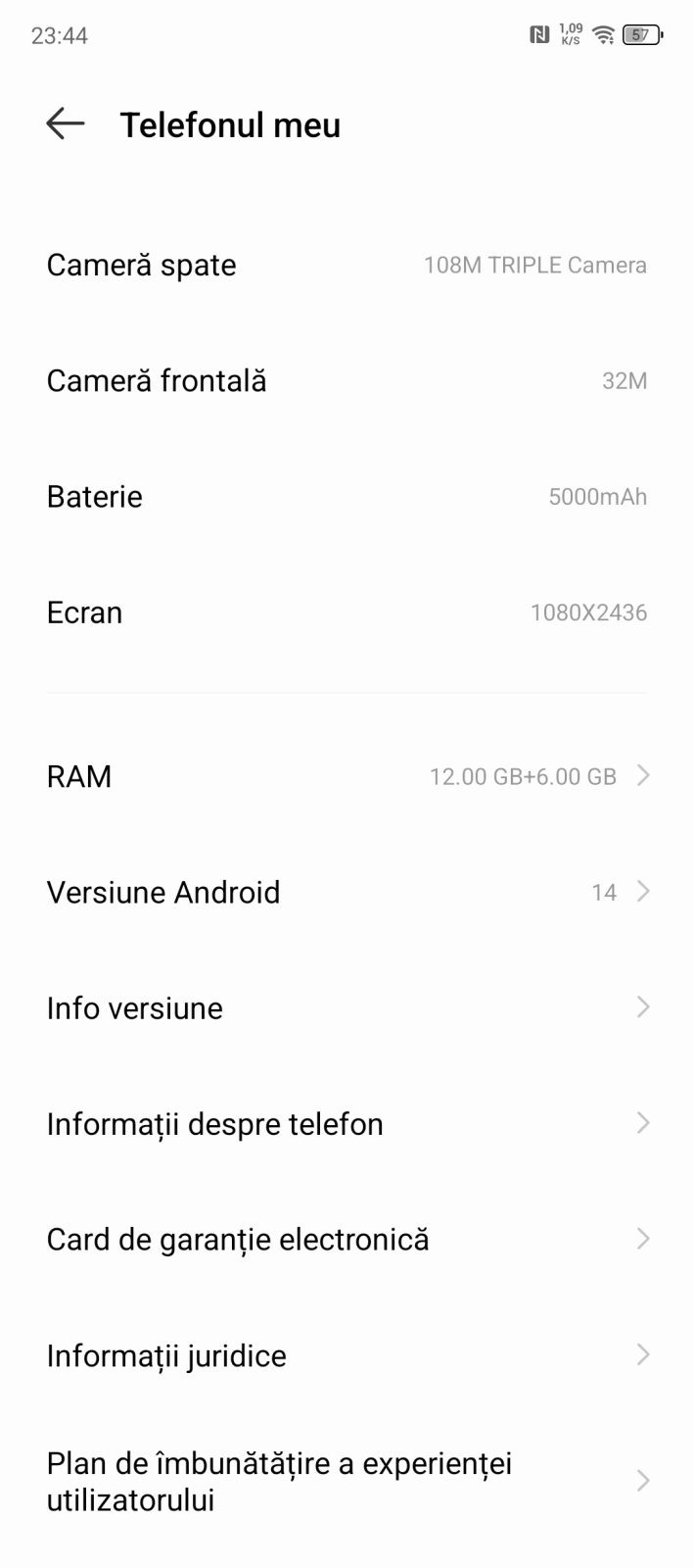 Camera principala este de 108MP cu stabilizare optica, iar celelalte doua camere sunt de 2MP. Sa fiu sincer cu voi, celelalte doua camere habar nu am pentru ce sunt. In meniul camerei exista doar optiunea de 3x zoom care se face prin crop, deci nu avem o lentila separata.