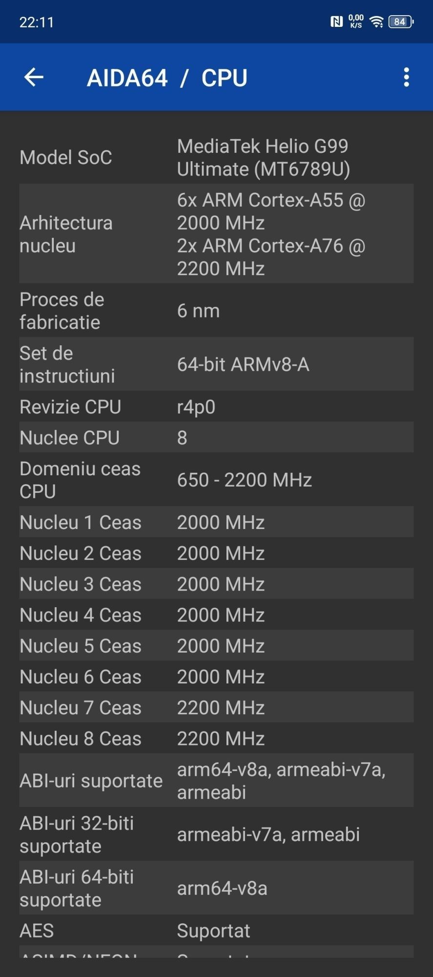 Discutam despre o platforma Mediatek Helio G99 Ultimate, nu cea mai performanta din segment. Comparativ cu un Snapdragon este mai slaba, insa si pretul telefonului dicteaza directia. Procesorul este decent, te poti juca titluri respectabile. Este realizat pe 6nm, consumul de energie este decent si pentru sarcini zilnice este mai mult decat perfect. Sigur, problema se va pune in timp, insa 2 ani de zile nu cred ca o sa ai probleme cu el.