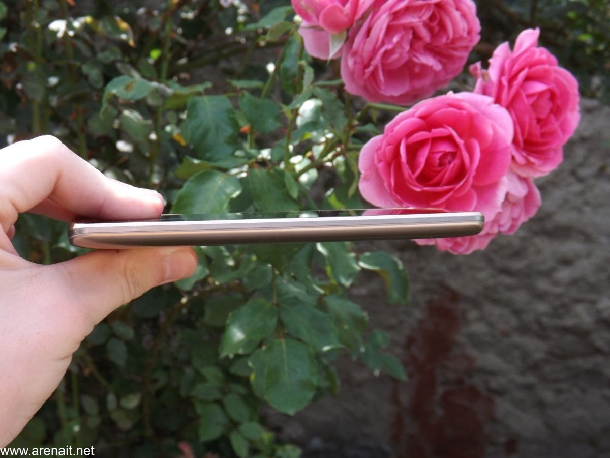 Culoare pe care am primit-o nu a fost chiar cea mai potrivita. Dupa cum o sa vedeti si in poze este un fel de auriu. Nu stiu cum se numeste culoarea respectiva, dar nu este pe gustul meu. Dar asta este o problema subiectiva. Mi-a placut ecranul edge-to-edge si spatiul foarte mic lasat in partea superioara si inferioara a ecranului. Capacul bateriei este detasabil si este dintr-un plastic ce da impresia de metal. Asta pentru ca 80% este plastic, iar 20% este metal, mai exact partea exterioara este acoperita cu o folie de metal.