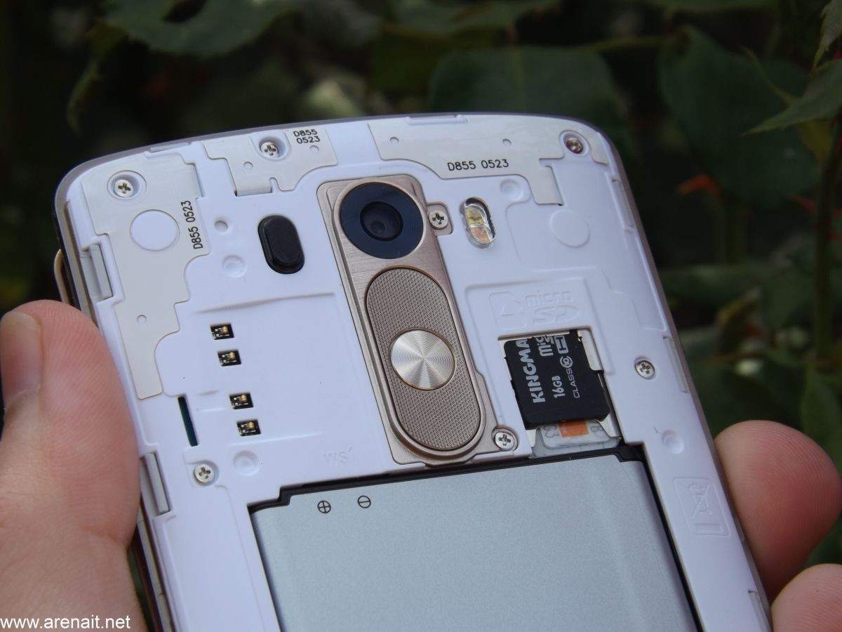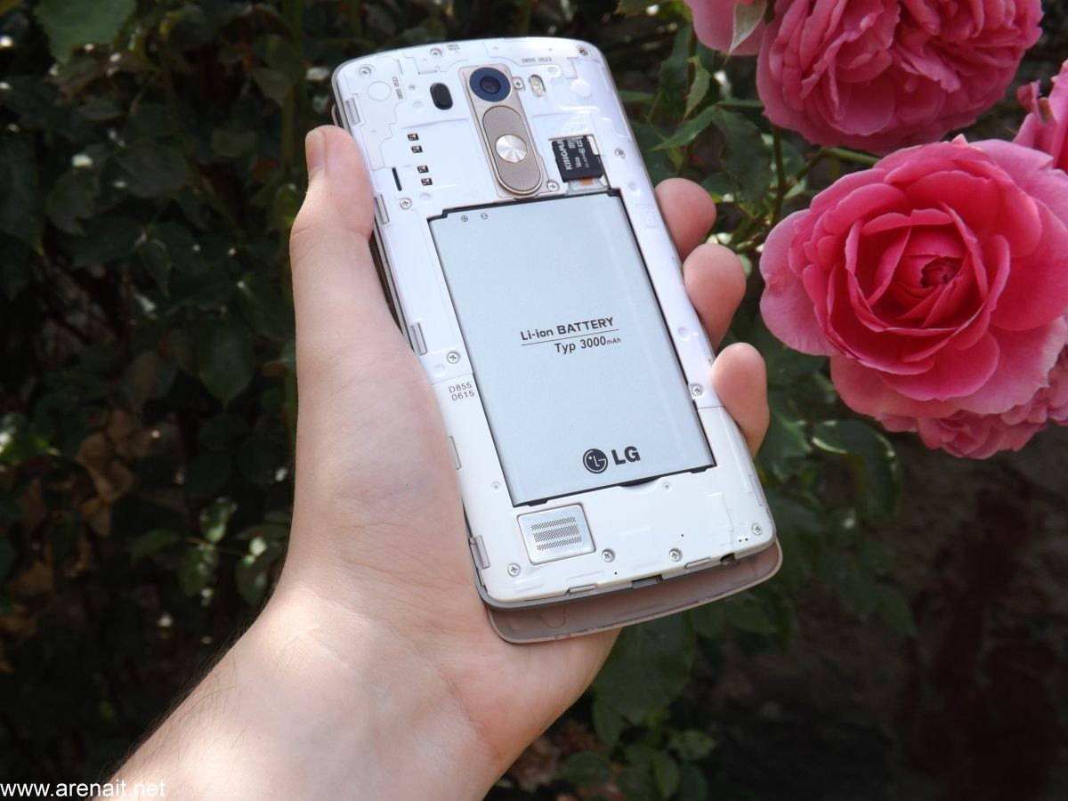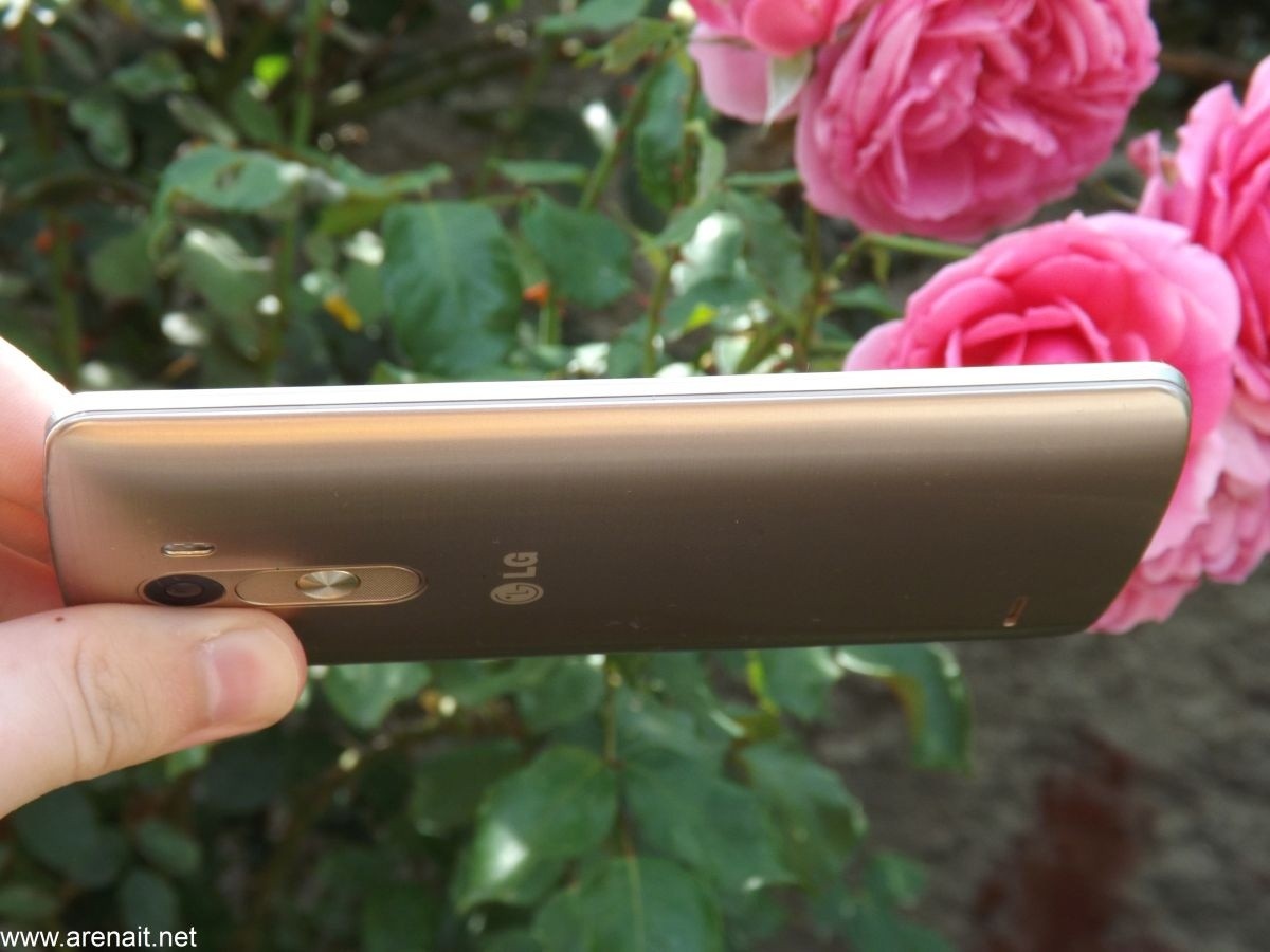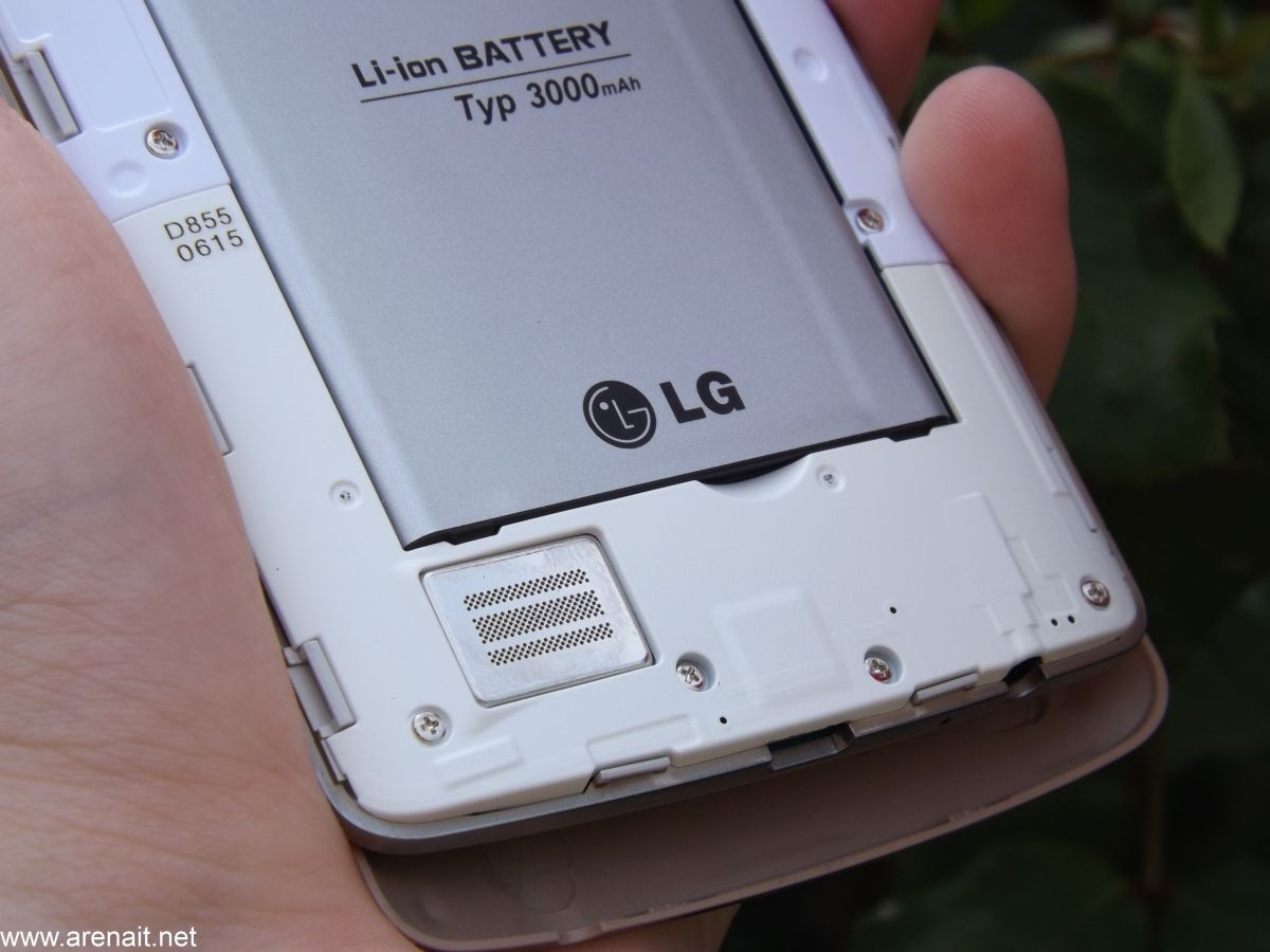 Butoanele au ramas tot pe partea din spate a telefonului si sunt la fel de comode ca pe G2. Din pacate nu mai sunt atat de distincte si ai putea sa le incurci. Difuzorul este de dimensiuni mari, dar gaura din capac este destul de mica. Se va auzi mai tare fara capac. G3 este si cel mai lat flagship dintre toate celelalte modele de pe piata. Cu toate ca este cel mai lat este si printre cele mai comode. Este usor de manevrat cu o mana.
