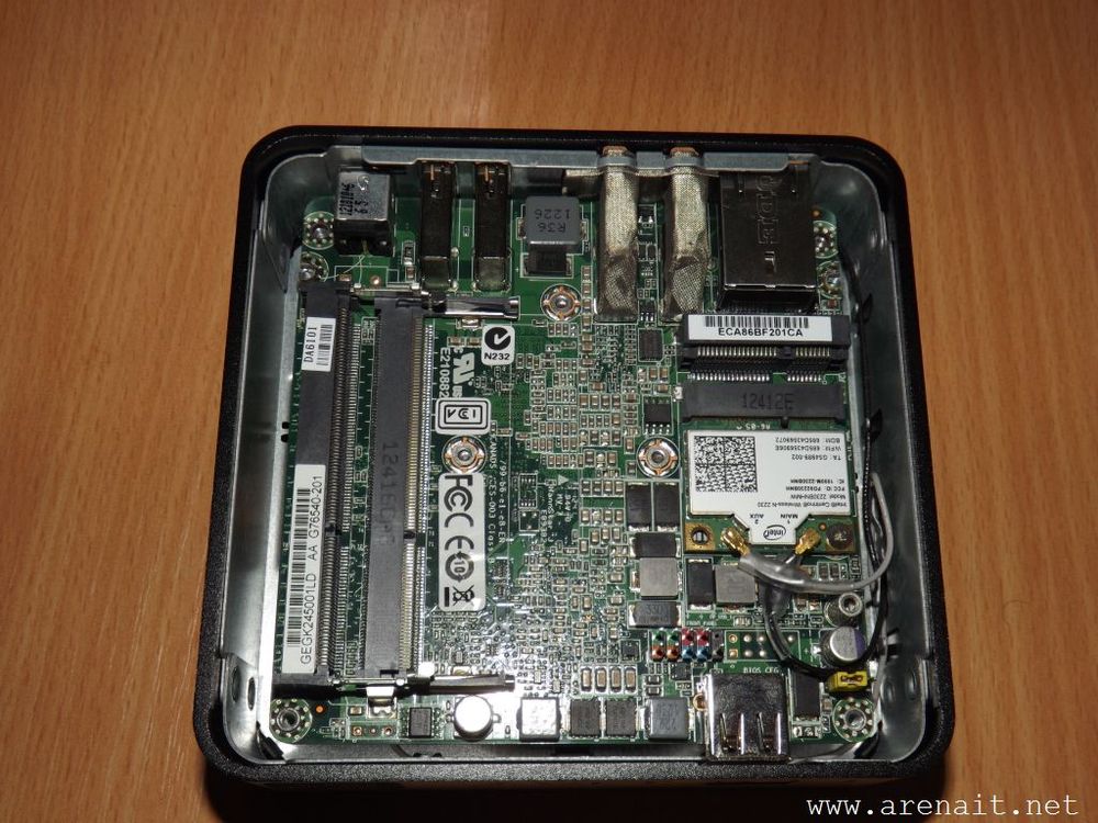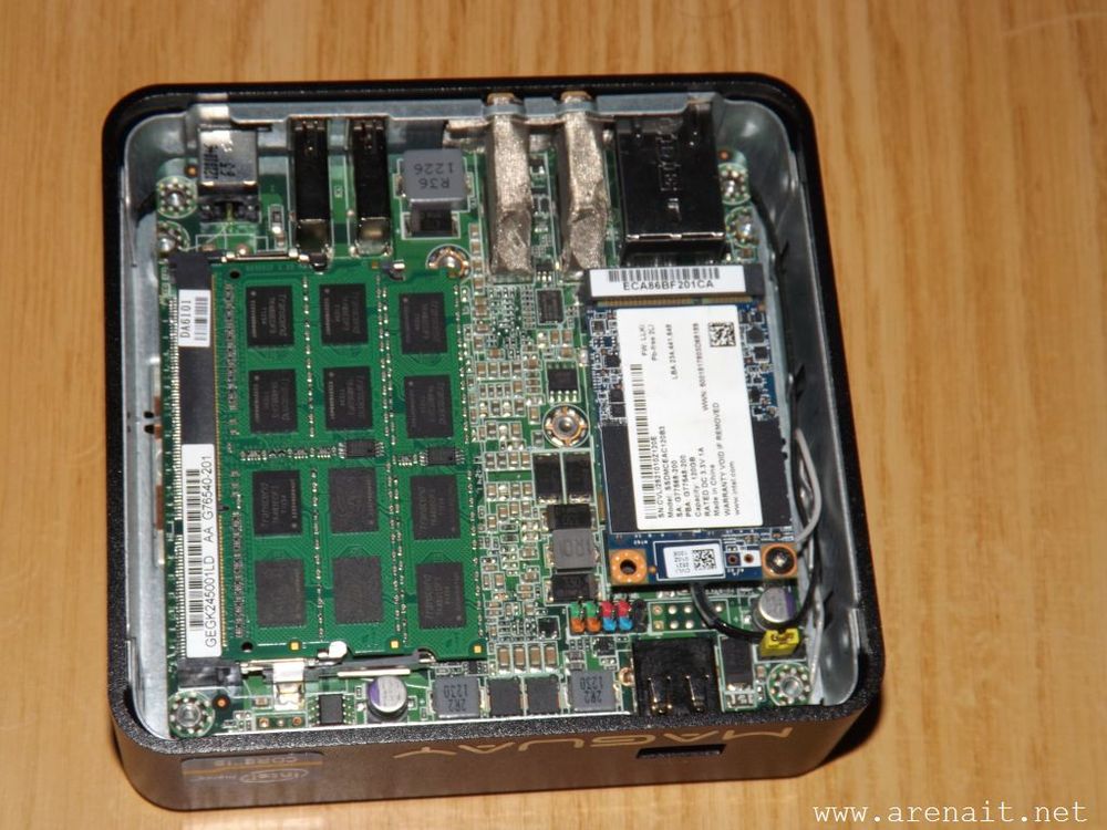 Placa de baza este produsa de Intel si foloseste chipsetul este QS77. Acest chipset stie sa lucreze cu standardul USB 3.0, desi ii lipsesc port-urile aferente. Probabil o sa vedem si alte modele ce vor avea conectorii respectivi. Pe placa gasim doua slot-uri pentru RAM, port mSATA, si placuta Centrino Wireless N 2230 ce ofera Bluetooth si Wi-Fi.