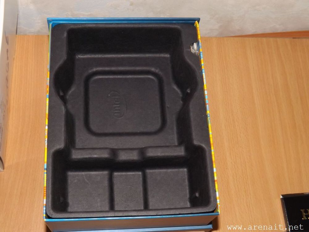 De mult nu am mai vazut o cutie atat de super. In primul rand ca este foarte aratoasa, iar in al doilea rand, te intampina cu sunetul specific Intel atunci cand o deschizi. Recunosc ca am deschis-o si inchis-o de multe ori, doar ca sa aud sunetul acela :). In pachet gasimt alimentatorul, o montura VESA, si separat de cutie un cablu de alimentare.