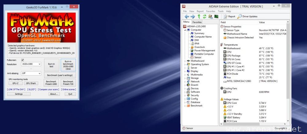 Prima data m-am gandit sa ii dau de lucru cu niste jocuri. M-am gandit mai bine si nu a fost o idee tocmai stralucita pentru ca nu se descurca prea bine. FIFA 11 il duce pe detalii low-medium, rezolutie 1366 x 768 pixeli, cu 25 FPS. In Metro Last Night, cu aceleasi detalii dar rezolutie 1024 x 768, ajunge in timpul actiunii la maxim 22-23 FPS. Nu prea este jucabil, asa ca am trecut la benchmark-uri. Nu m-am aruncat la multe teste, doar cateva.