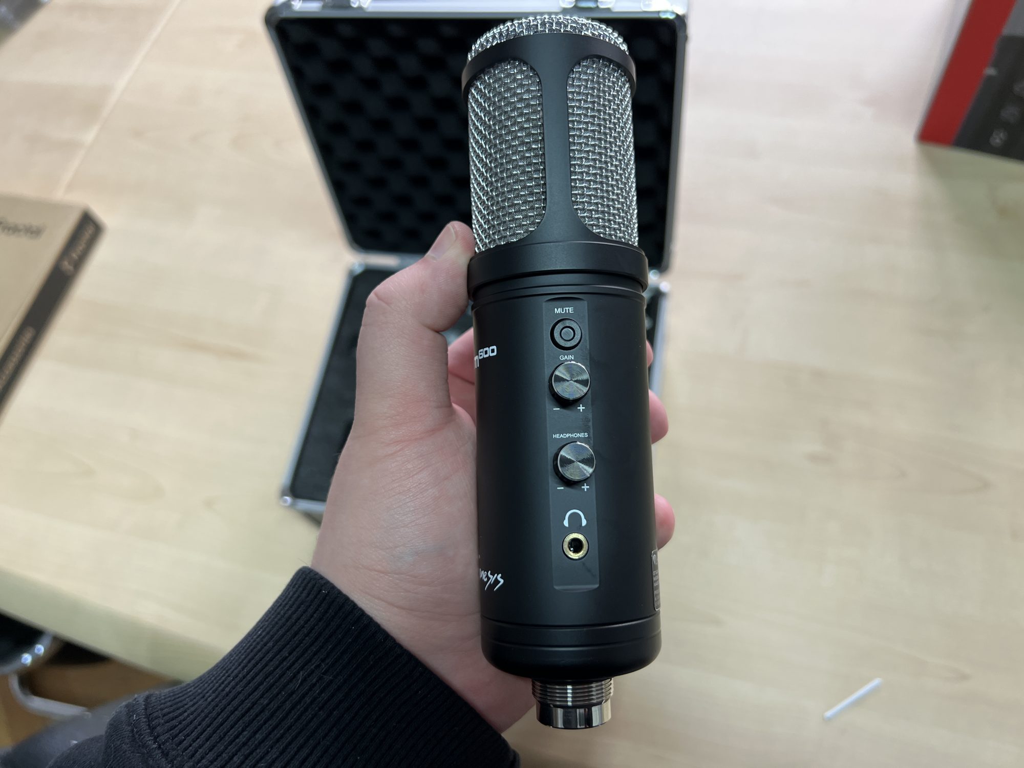 Este un microfon robust cu 2 potentiometre de contorl pentru Gain si Volum, un jack pentru casti si buton de Mute.