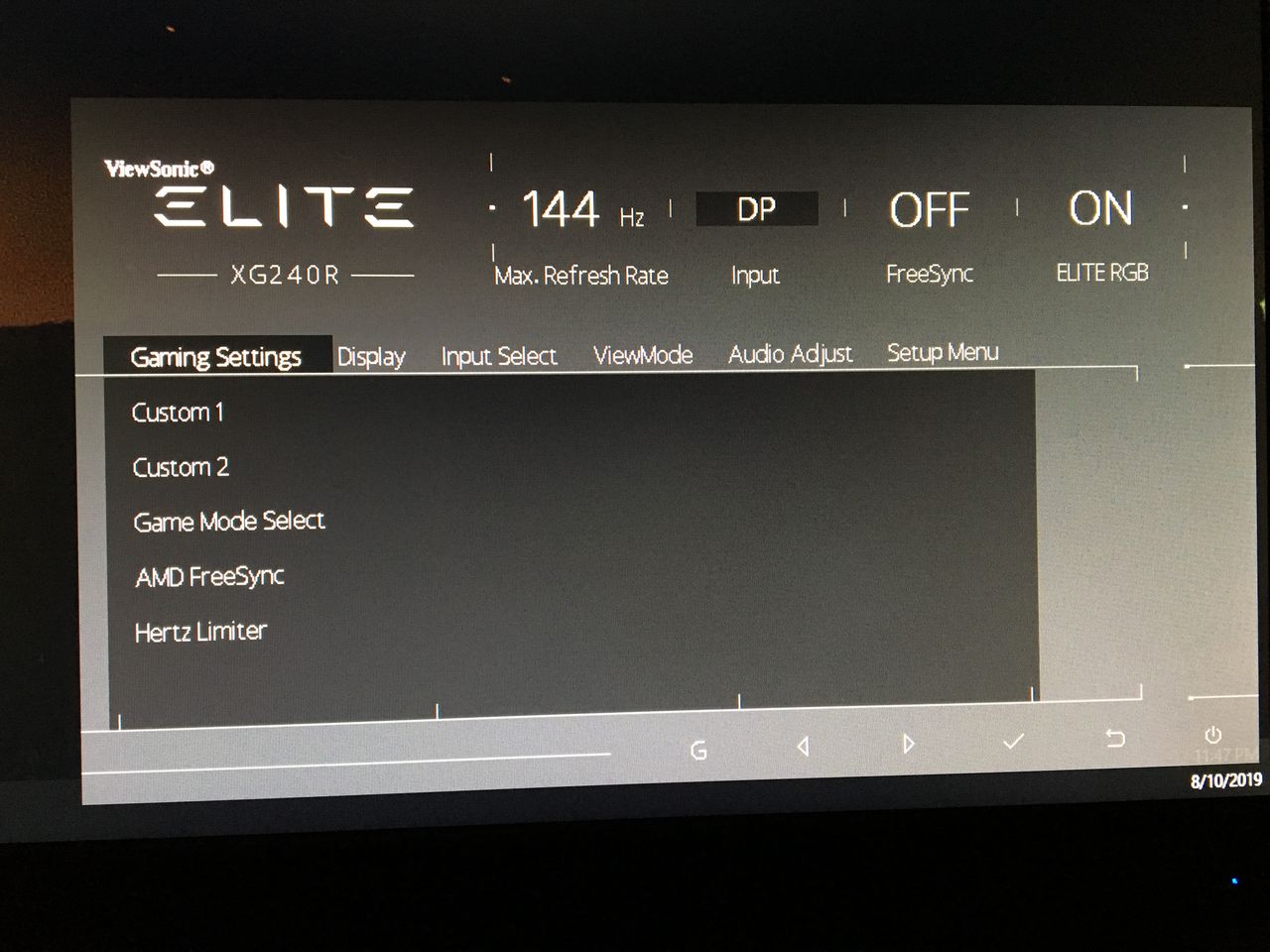 Monitorul are cateva reglaje clasice in meniu pe care le regasim si la alte modele. In schimb ofera niste moduri presetate pentru diferite tipuri de joc: FPS, MOBA, Battle Royal.