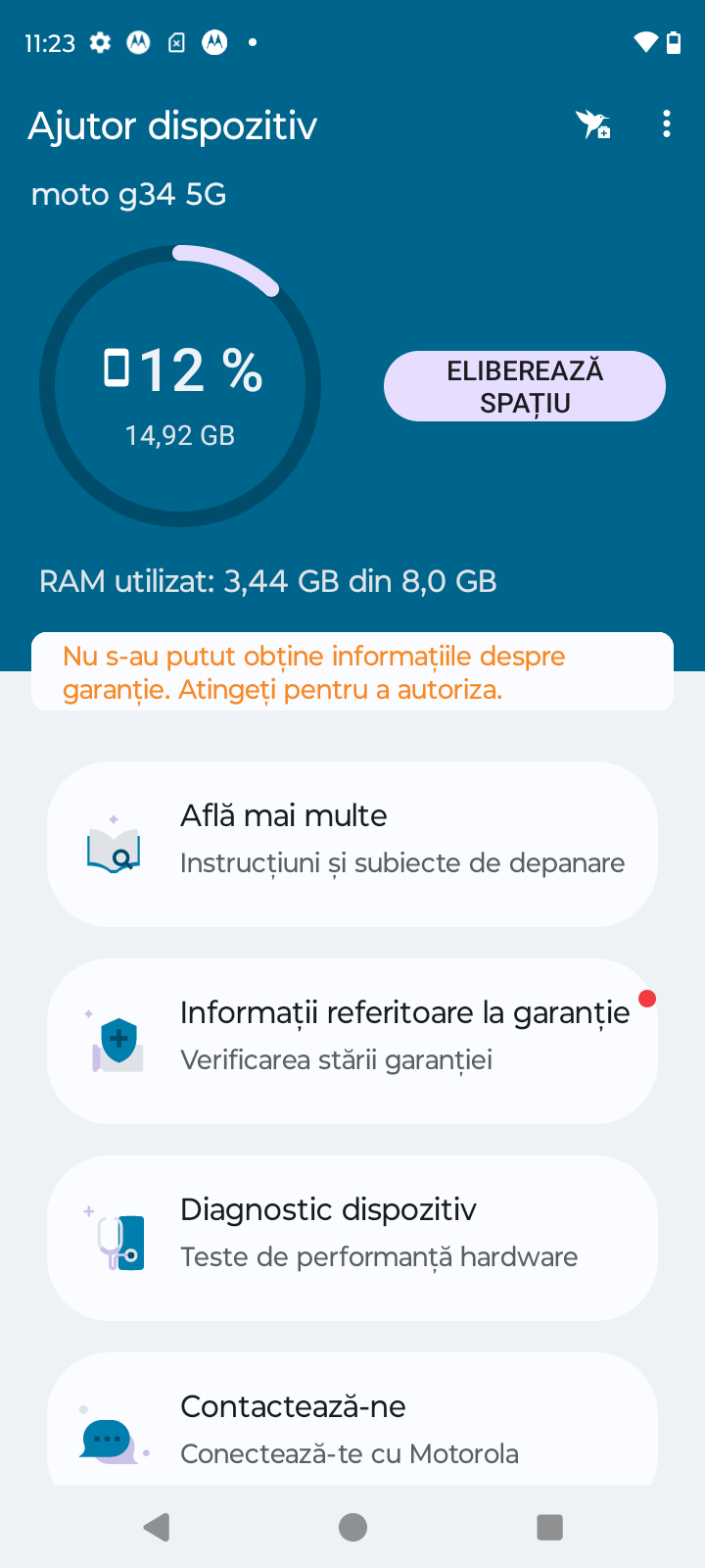 Motorola tot timpul a avut baterii bune. In plus, optimizarea software Motorola mi s-a parut una excelenta si mult peste ceea ce ofera alti producatori. Cu 5000mAh baterie, G34 ofera o autonomie excelenta pentru cei care folosesc telefonul in conditii normale. Doua zile de utilizare normala, fara sa trag de telefon dar nici sa-l menajez, sunt foarte in regula pentru segmentul sau de pret.