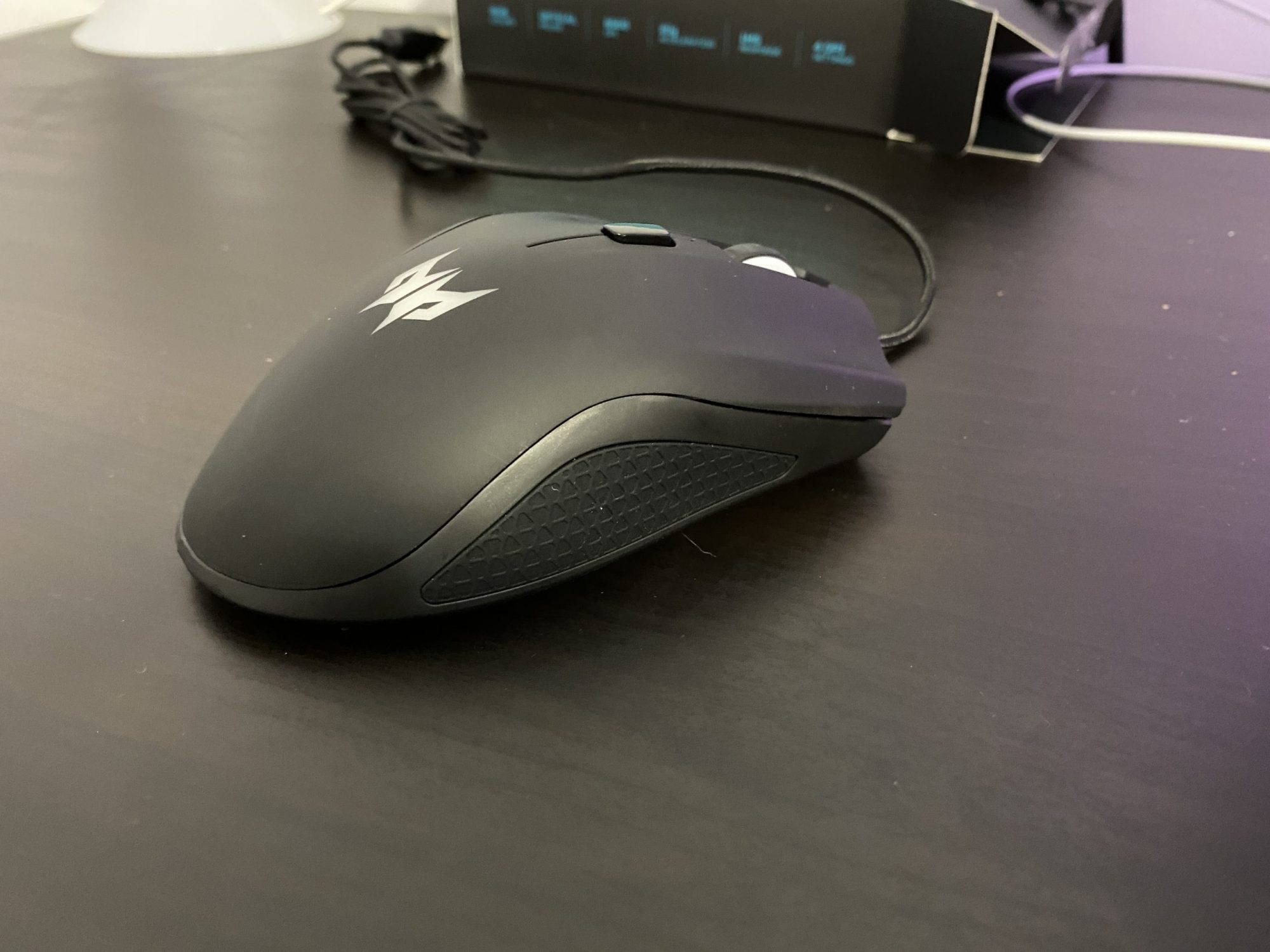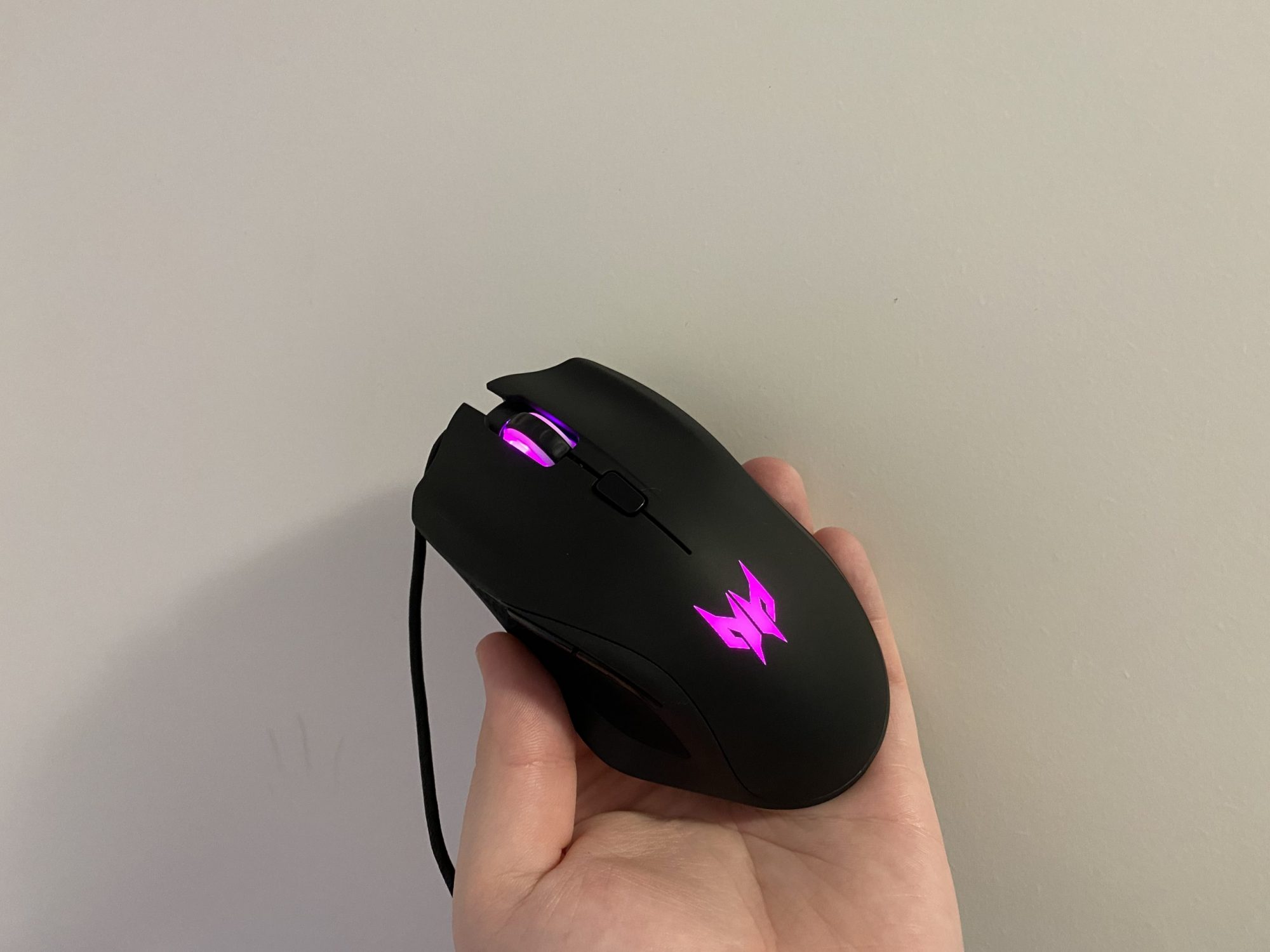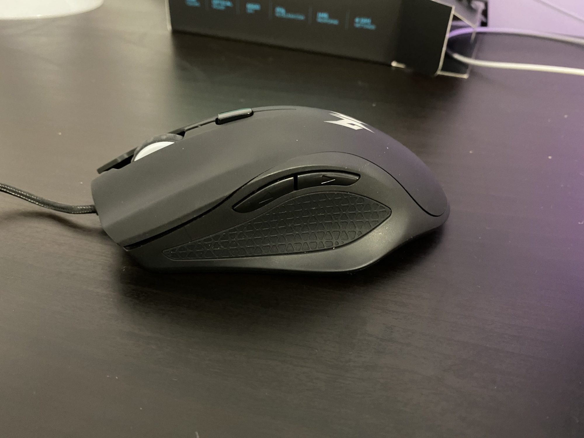 Are un buton pentru DPI si un cablu suficient de lung. Dispune de iluminare RGB pe logoul Predator si pe rotita de scroll.