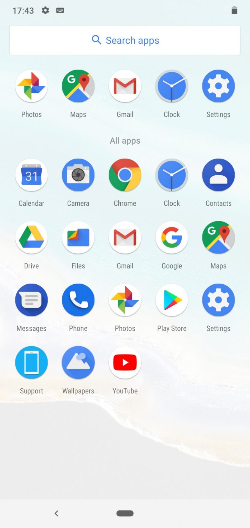 Terminalul a venit cu putine aplicatii preinstalate: Agenda, Calendar, Camera foto, Ceas, suita Google (Chrome, Drive, Files Go, Gmail, Photos, Maps, Messages, PlayStore si YouTube), Telefon, Wallpapers si o aplicatie in-house de suport, care iti cerea si un feedback, dupa ceva vreme: