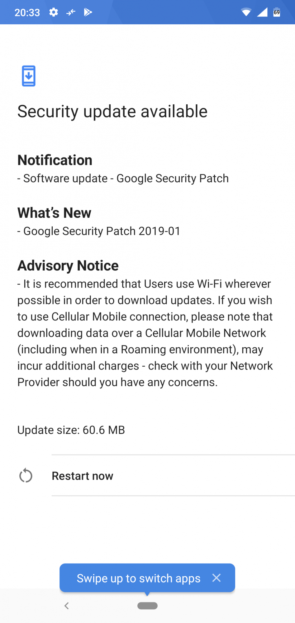 Cat timp am folosit telefonul am avut parte si de cateva update-uri OTA, printre care si cea care a adus nivelul de securitate al lunii februarie 2019. Ca fapt divers, pe OnePlus 6 personal nu am primit aceasta actualizare, sarind de la ianuarie direct la martie. Nota bene, Nokia & Google!