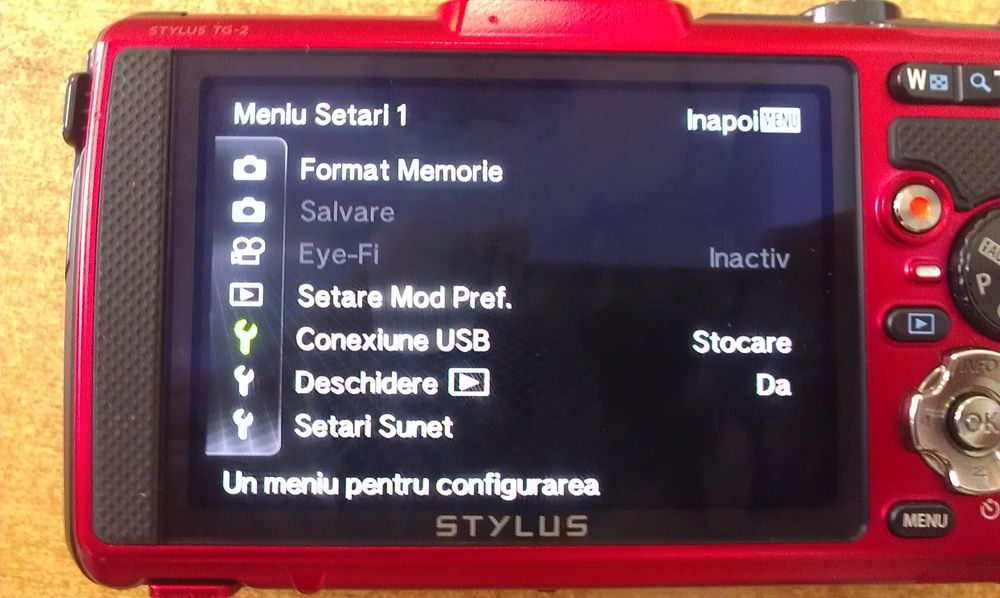 Foarte aratos si usor de navigat prin el. Chiar daca esti incepator, si nu ai mai umblat pe camera digitala, acest meniu este foarte simplu. Pe langa setarile clasice pe care le gasesti pe orice model compact, am intalnit cateva functii dragute pe care nu le vezi oriunde.