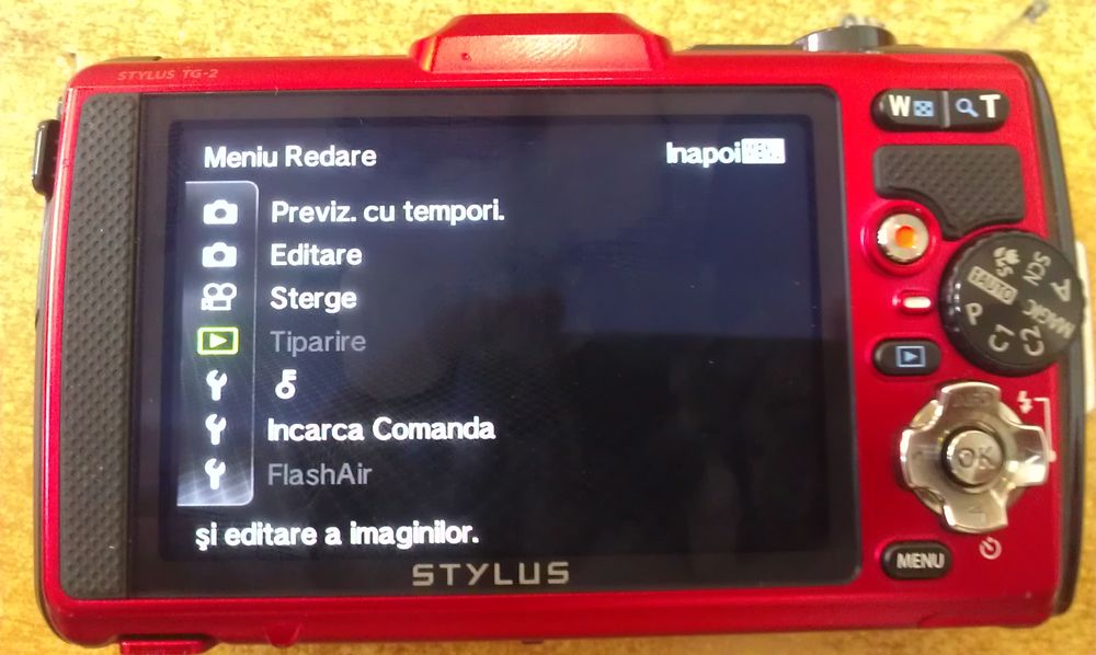 - Caracteristici speciale: Eye-Fi, rezistent la caderi de la inaltimi de 2 metri, subacvatic pana la 15 metri adancime, GPS si busola electronica, rezistent la inghet pana la -10 grade, rezistent la strivire pana la 100 kg, manometru, compatibil cu FlashAir, meniul de comanda TAP