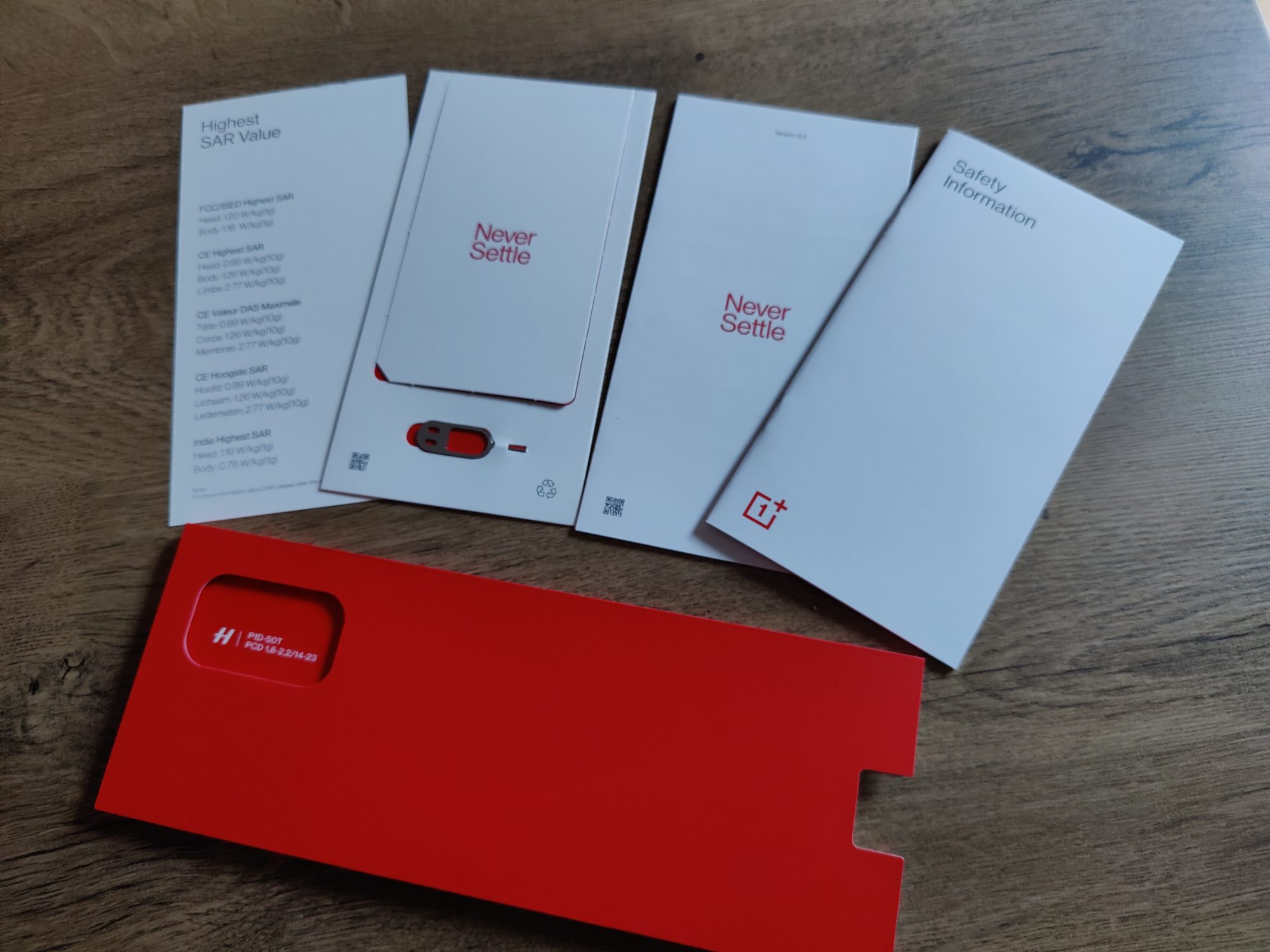 Știu, ecologie si toate alea, cartonul este făcut din dar mie îmi place modelul ăsta de cutie, mare, paralelipipedic și roșu! Inspiră cumva un aer de premium quality! În interior găsim telefonul, o husă transparentă de silicon, încărcătorul de perete cu cablul USB-C la ambele capete, cheița de la SIM-tray și câteva broșuri. În principiu, dacă ați citit review-ul la OnePlus 8t, menționat mai sus de mine, nu sunt diferențe decât la modelul telefonului livrat. 🙂
