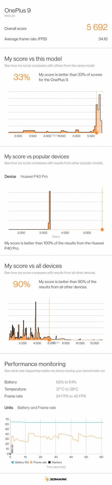 OnePlus 9 are la bord procesorul Qualcomm Snapdragon 888, cu 8 sau 12GB de RAM și cu 128 sau 256GB memorie internă. Toate acestea îl situează pe același nivel cu regele telefoanelor cu Android – Samsung Galaxy S21, cel puțin la specificații.
