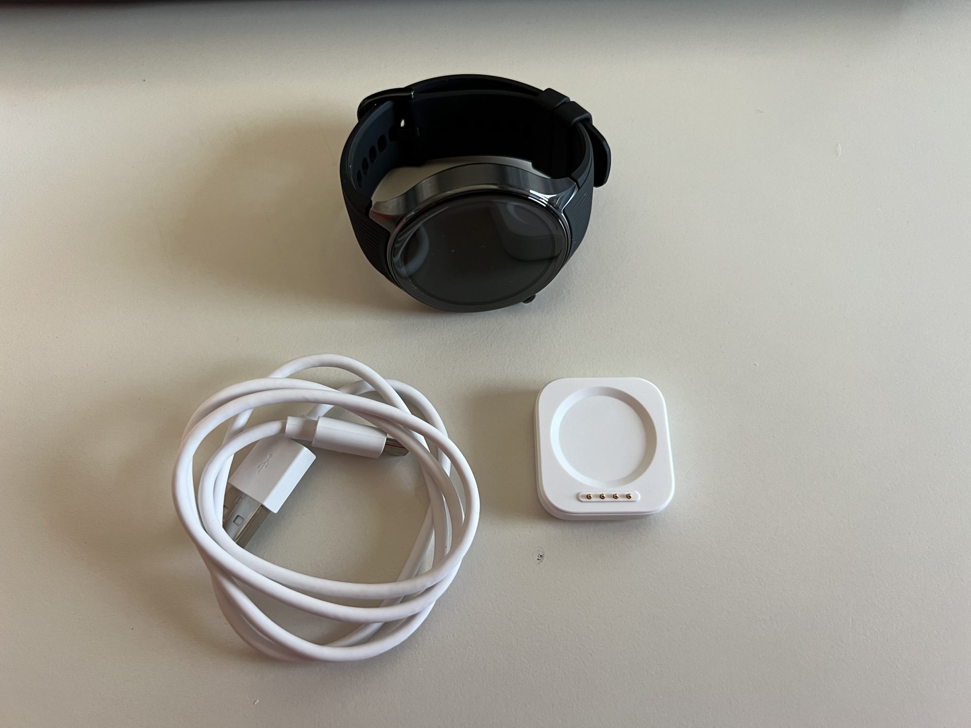 Revenind la OP Watch 2. Voi incepe cu partea de unboxing si conectare la telefon. Trebuie sa stiti ca in cutie o sa primiti doar un cablu USB C – USB A pentru incarcator. USB C intra in incarcator si USB A intr-un laptop sa zicem. Partea de asociere cu un telefon a fost extrem de usoara. Folosesc un realme GT6 ca telefon secundar, deci un Android, ca sa raman oarecum conectat si cu acest ecosistem. Mi s-a spus din start ca ceasul se va putea conecta doar cu un telefon Android, ceea ce este un minus din punctul meu de vedere.